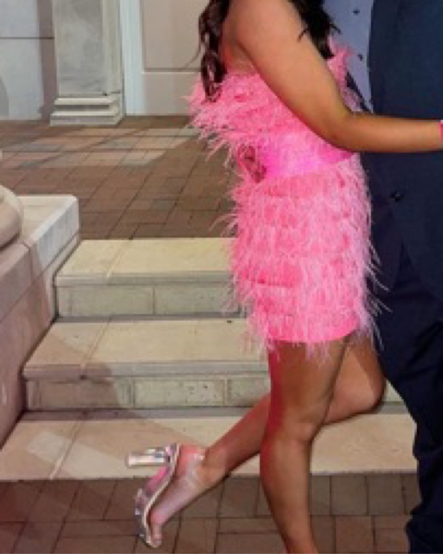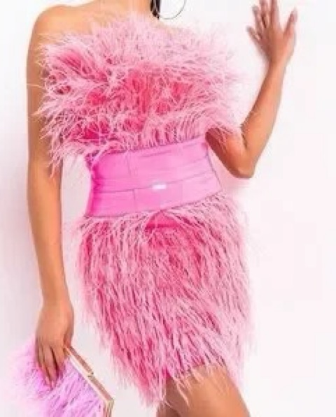 Akira Pink Feather Strapless Mini Dress by Akira - Pickle
