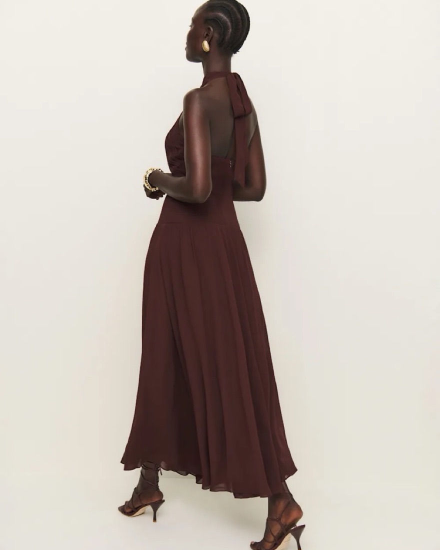 Elegant Mahogany Maxi Dress by Reformation - Pickle