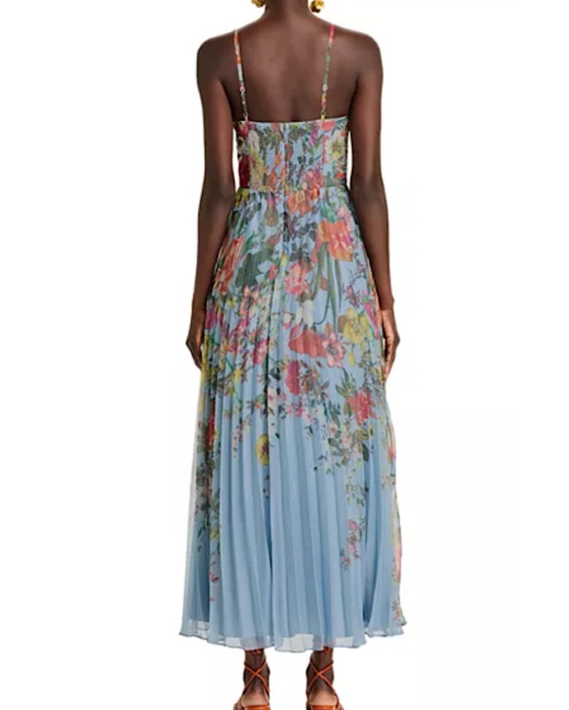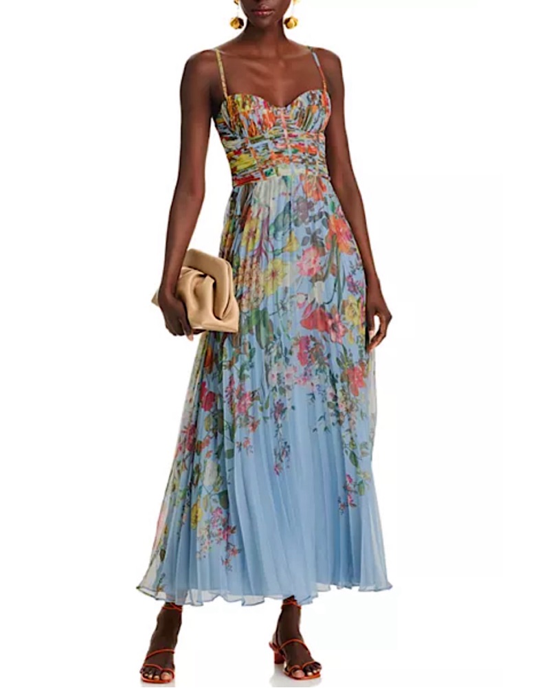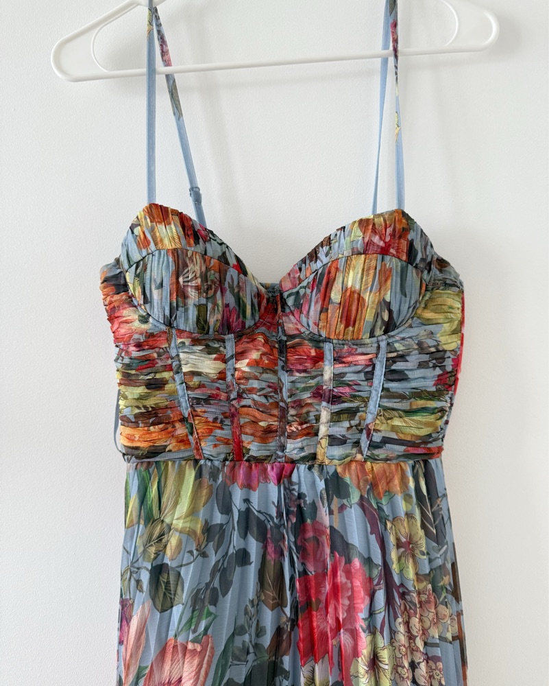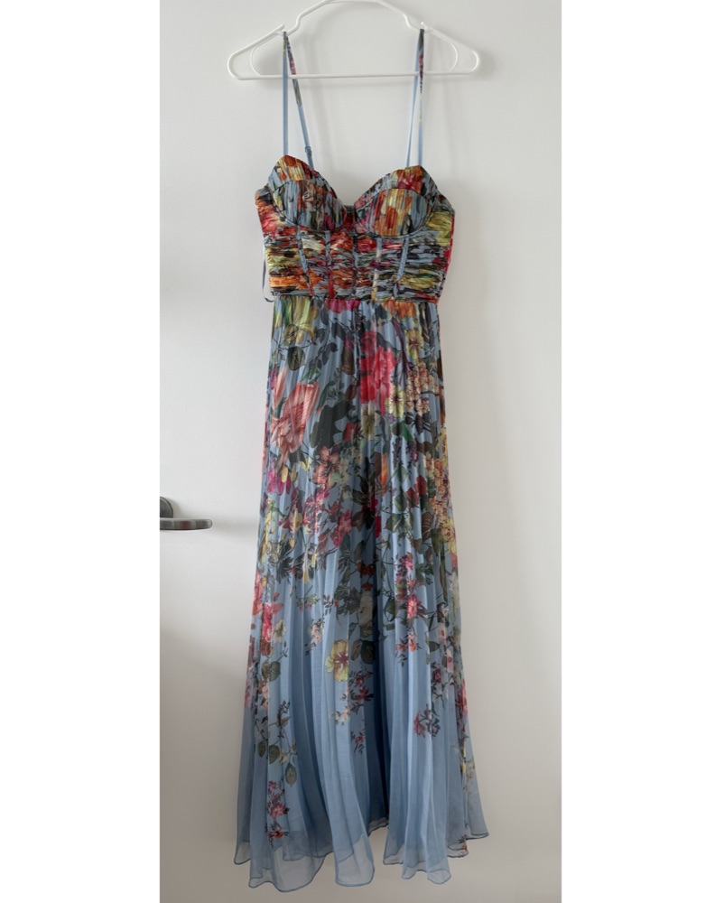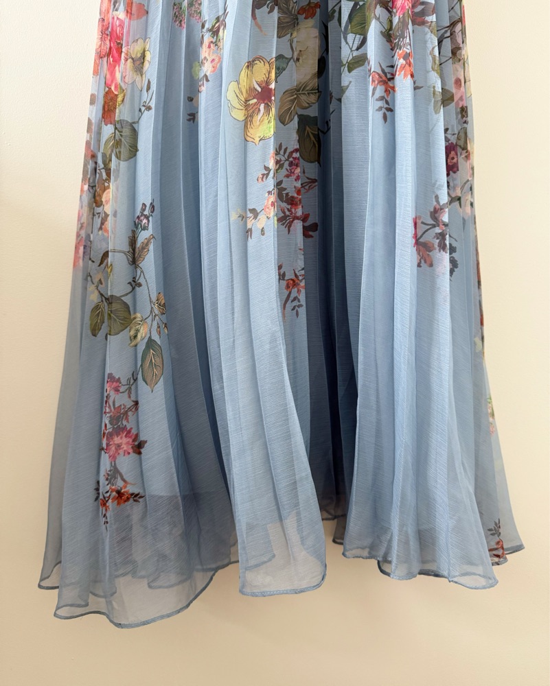 AQUA Pleated Blue Floral Guest of Dress