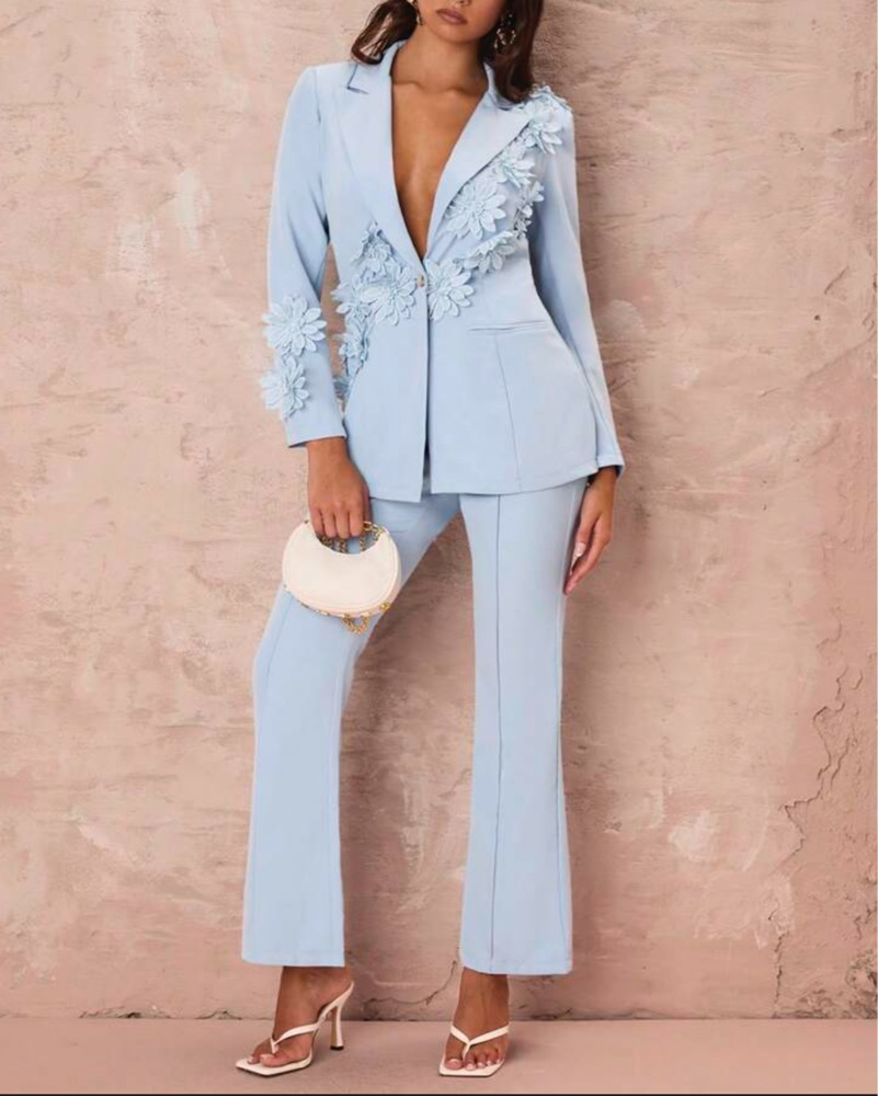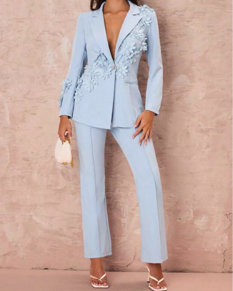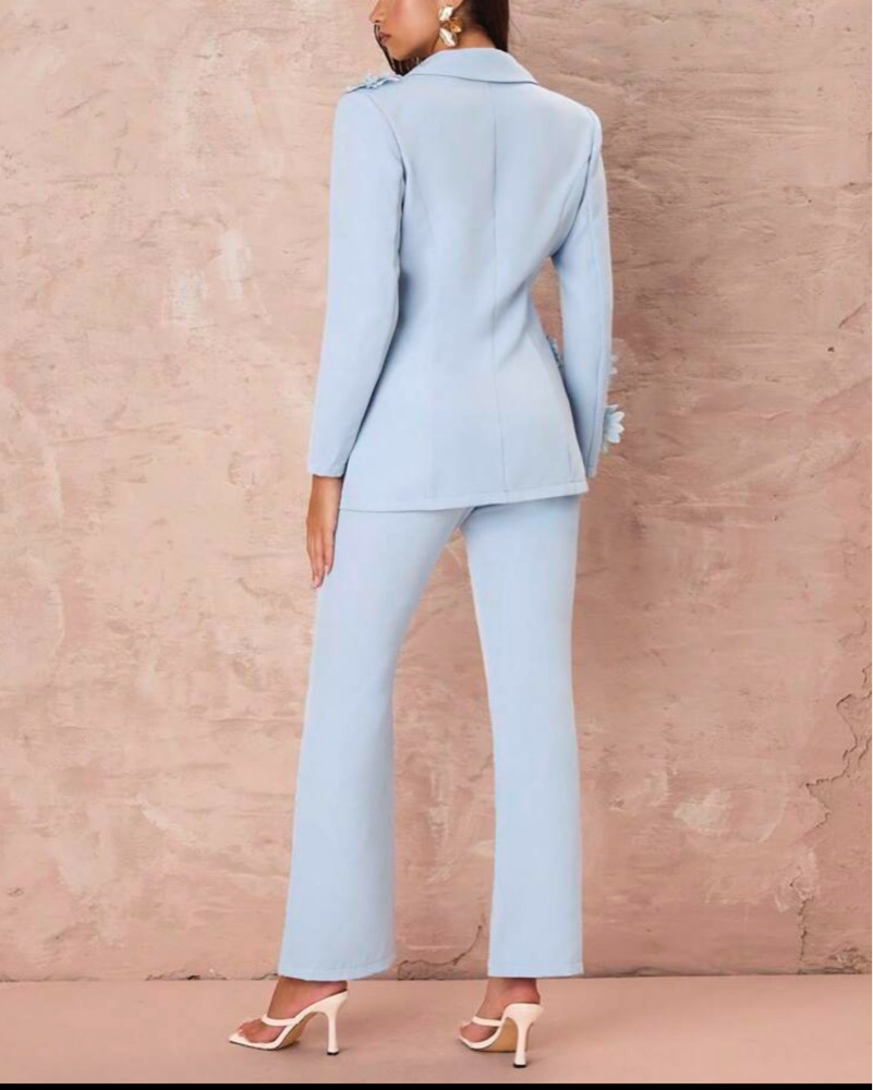 Blue Floral Blazer and Pants set perfect for business brand photoshoots or pageant interview
