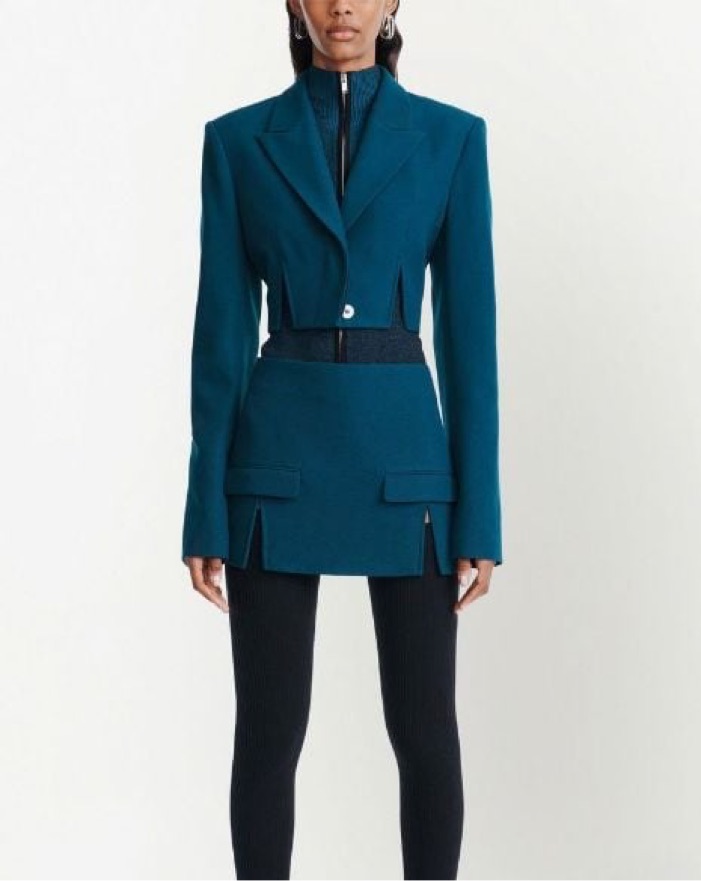 Matching set from Dion Lee in Petrol size 10AU skirt (US 4-6) and 12 blazer (6-8 US). Super cute and fun