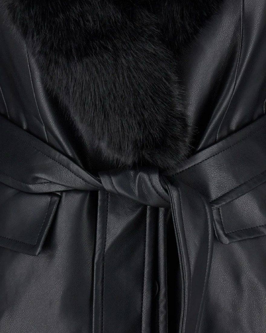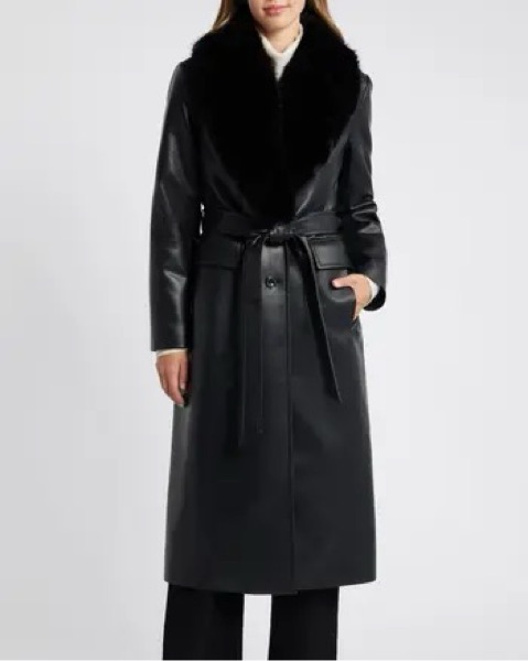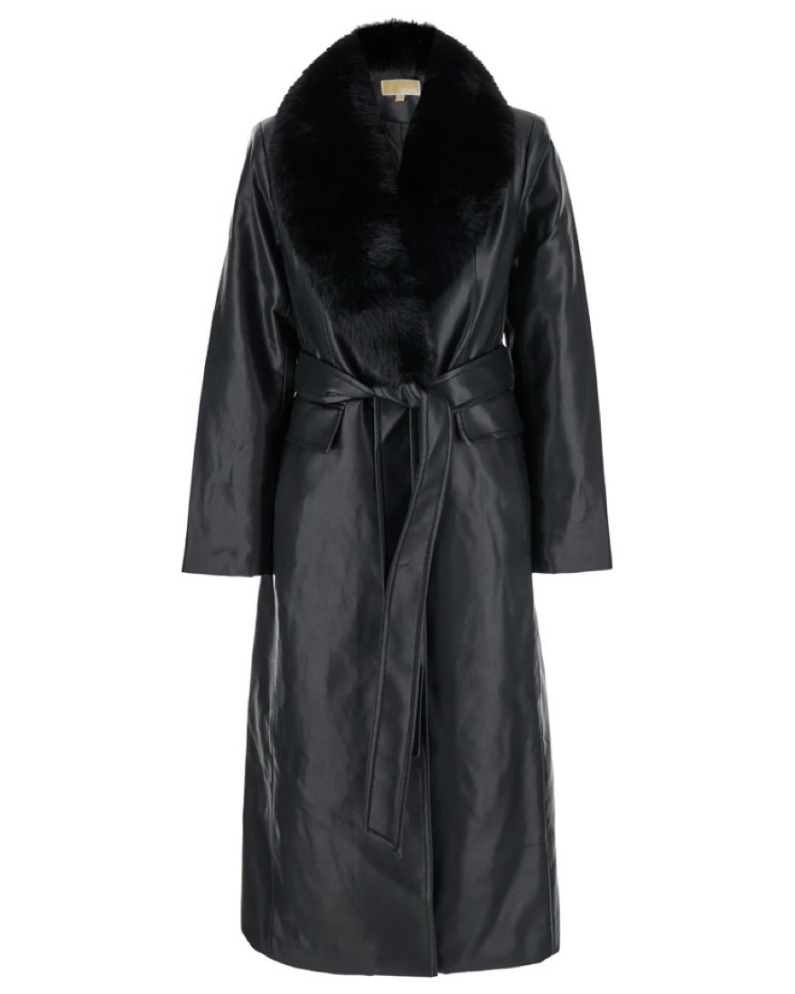 Made of vegan leather, and you can’t tell at all! Super warm and AMAZING quality. Please treat this as if it’s your own. Honestly not the biggest fan of Michael Kors but this coat kiiiinda makes me want to look at the rest of their clothing.