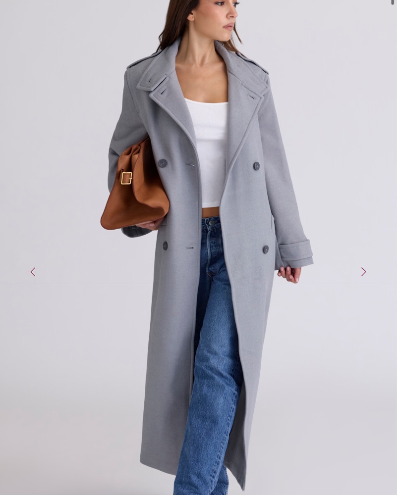 Grey Double Breasted Funnel Neck Coat by House of CB - Pickle