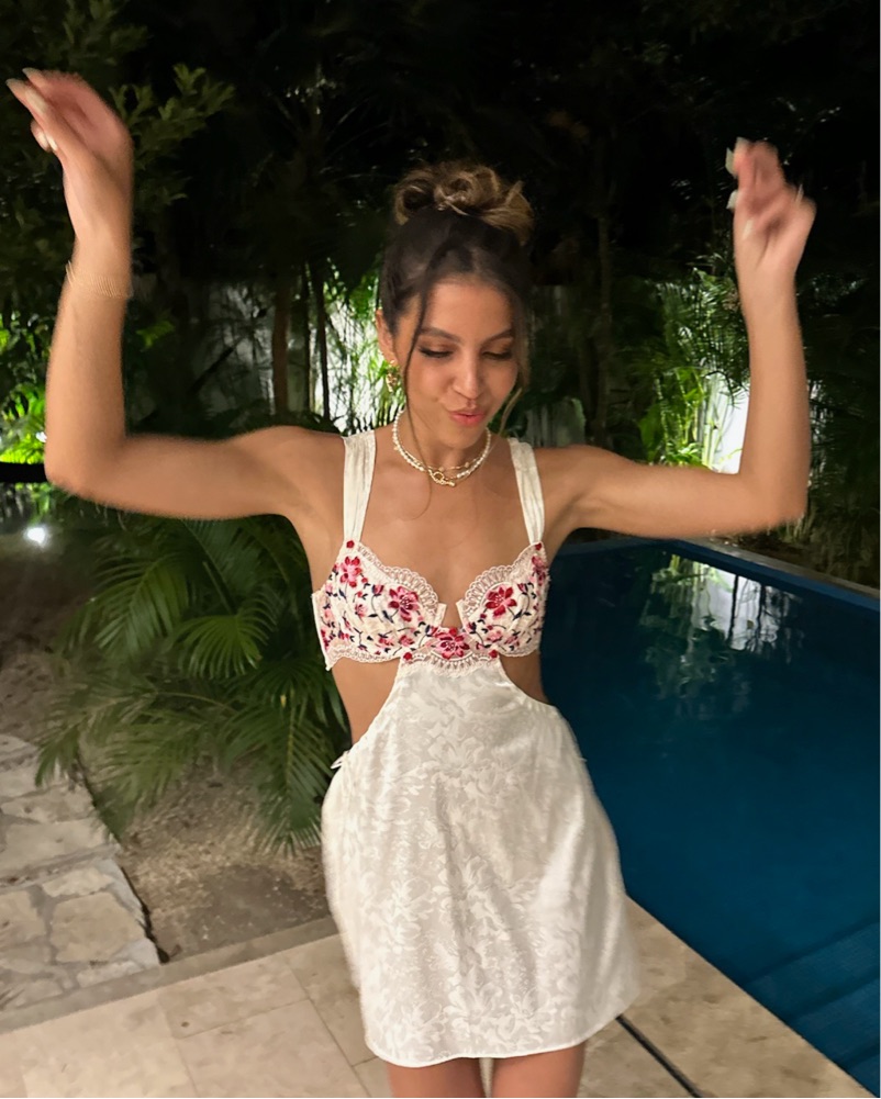 For Love & Lemons Festival Rose mini dress with embroidered floral bust and silky ivory skirt. Perfect for vacation, bachelorette trips, birthday dinners, and summer parties. Worn once and in excellent condition.