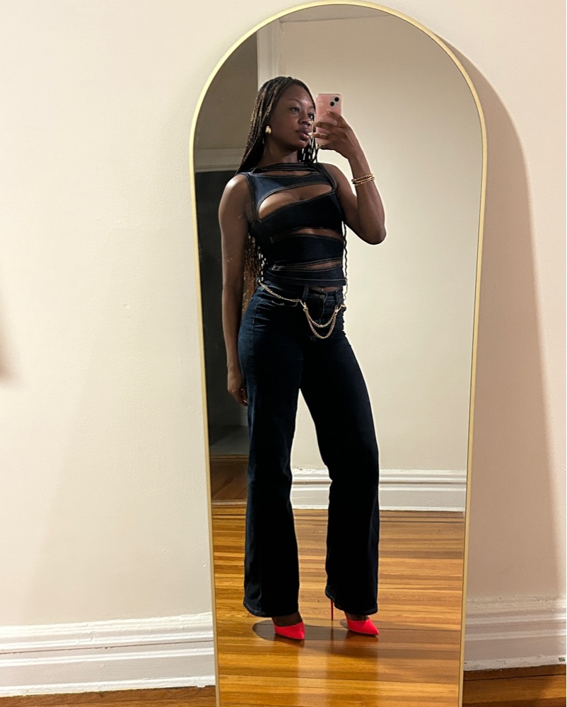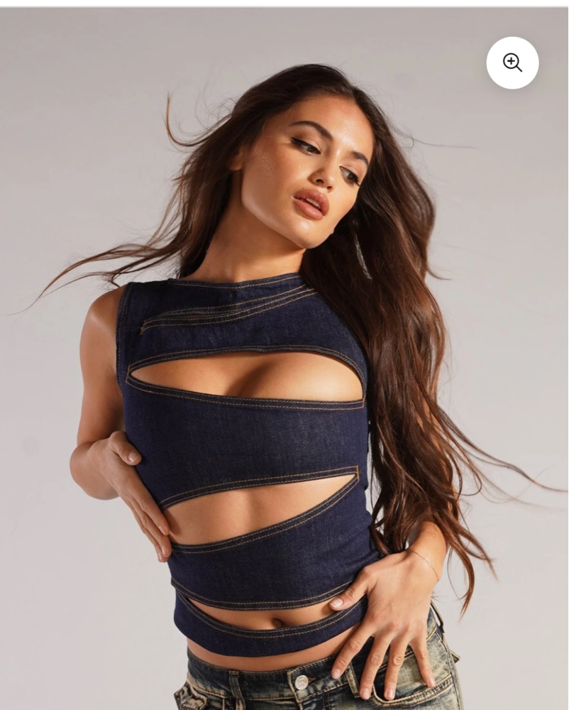 Literally one of the sexiest tops in my closet ! So sleek and comfortable throughout the night. The denim is durable but soft and it can easily dress up any outfit ! Fits size small and extra small as shown on my friend!