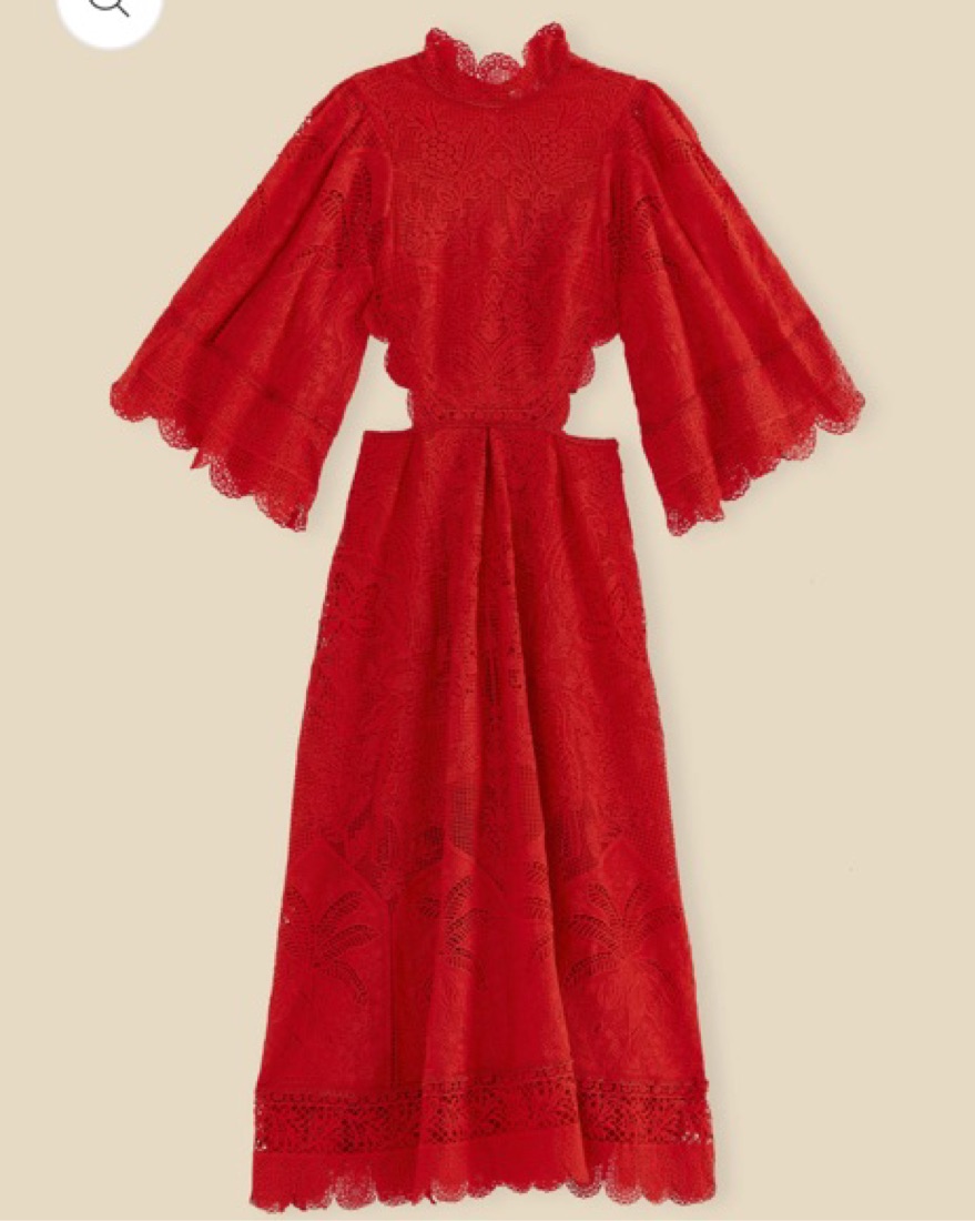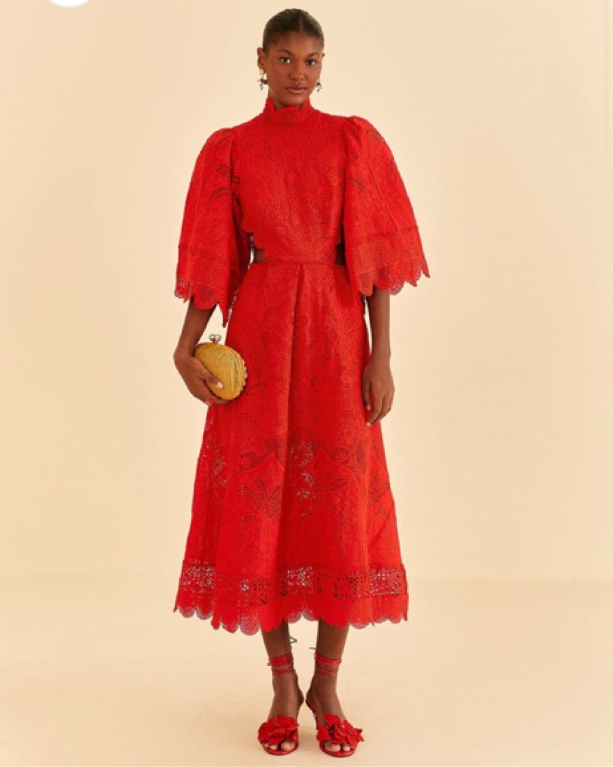 Farm Rio Red Guipure Cut Out Midi Dress