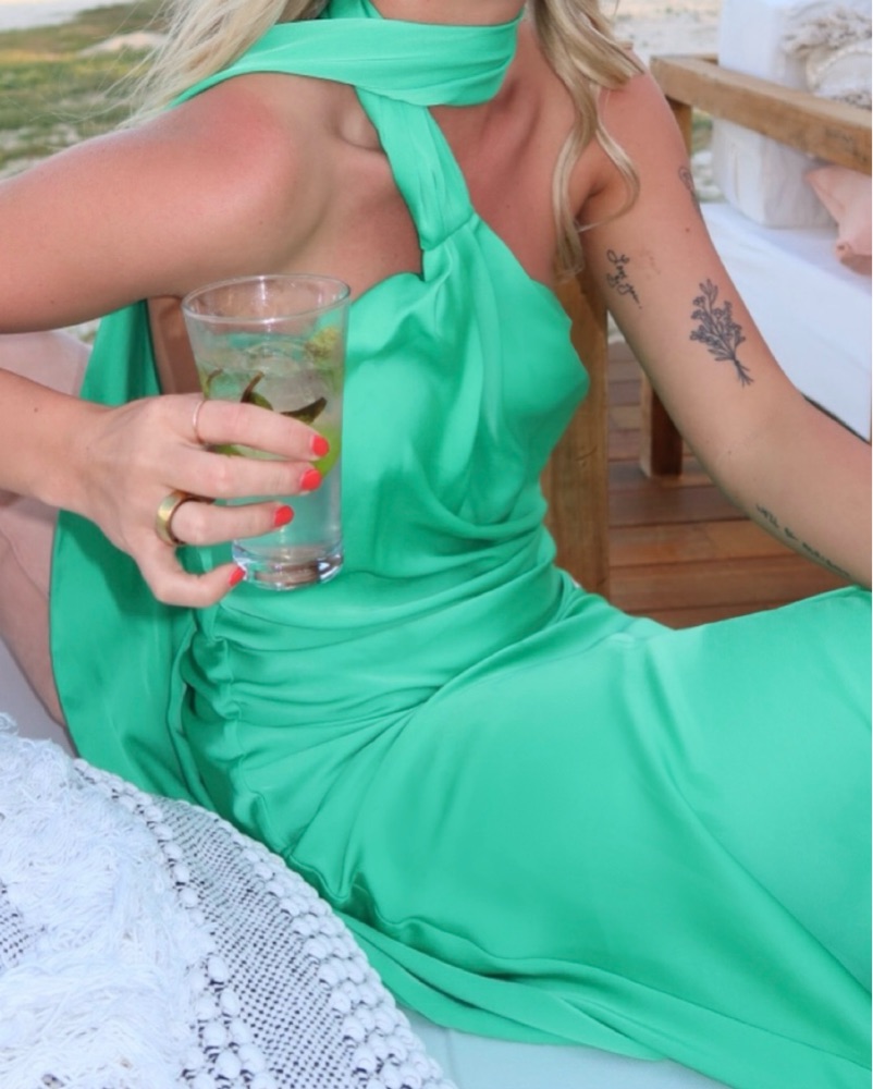 Rat & Boa Azzara Dress (Green Maxi Dress) Cowl back Tassel detail Side slit opening Delicate item 100% Recycled Polyester