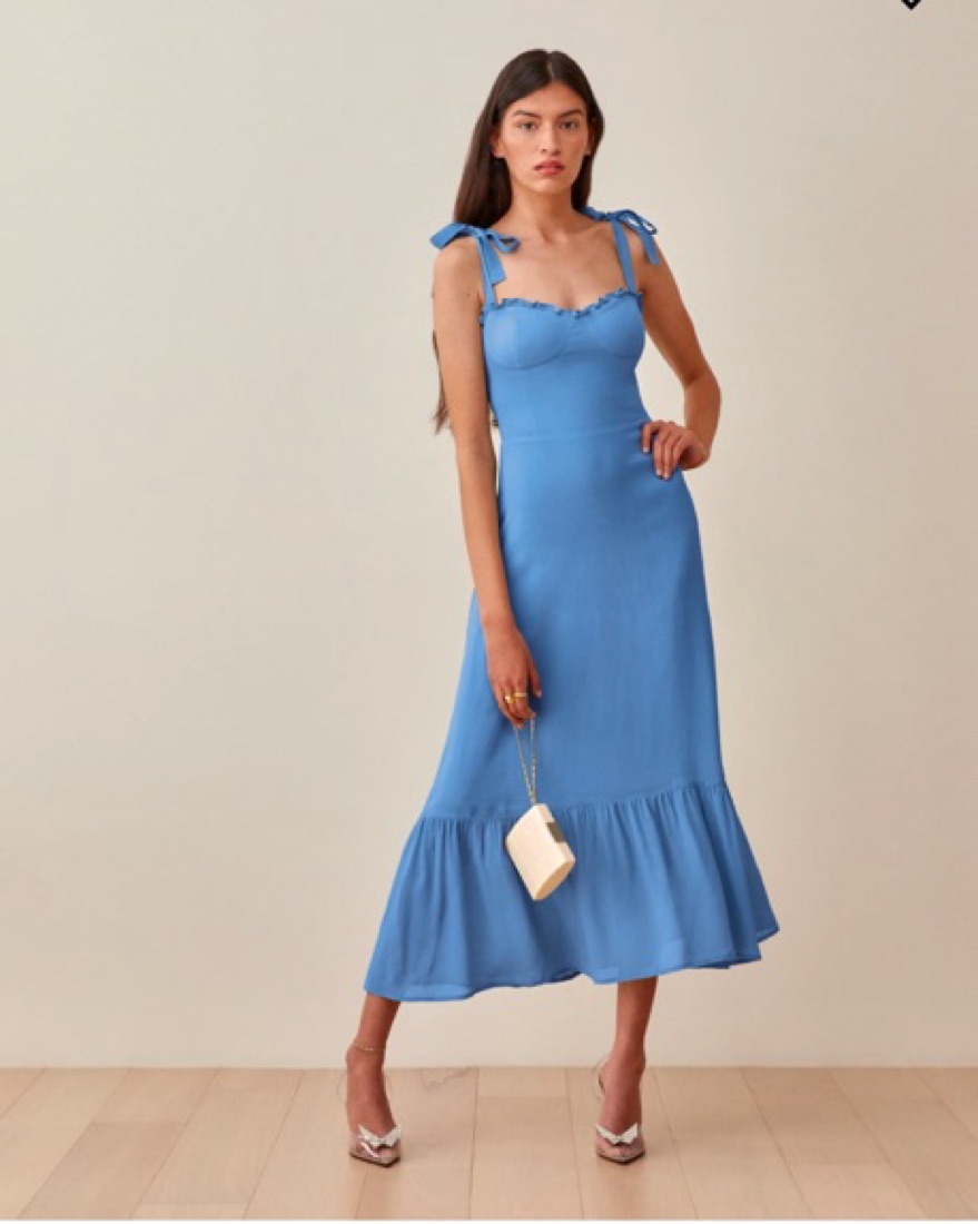 Blue reformation Nikita dress size 10, go to dress for a wedding, baby shower, or bridal shower