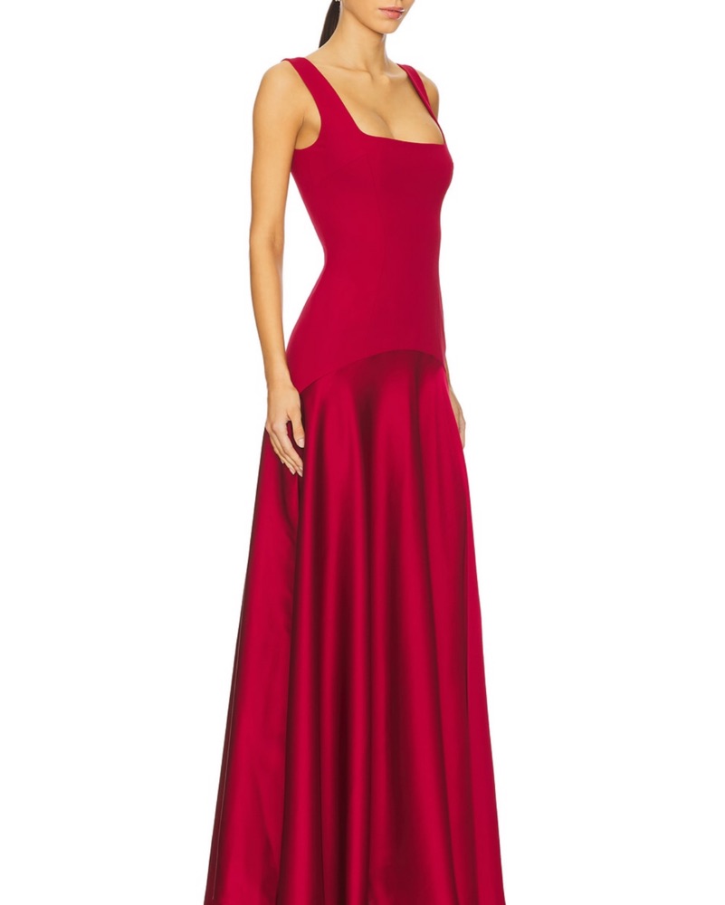 By Marianna Sidney gown in oxblood. Price reflects dry cleaning fee. Straps taken in very slightly to account for my height (5’6)
