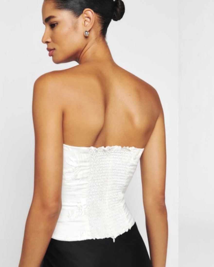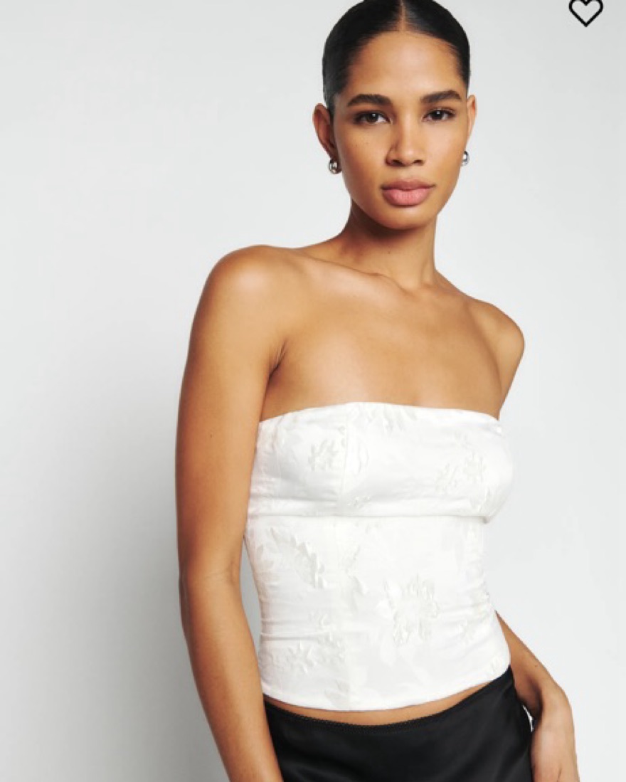 This chic strapless top is perfect for a night out or special occasion. Pair it with sleek black pants for a sophisticated look. Sold out and brand new !