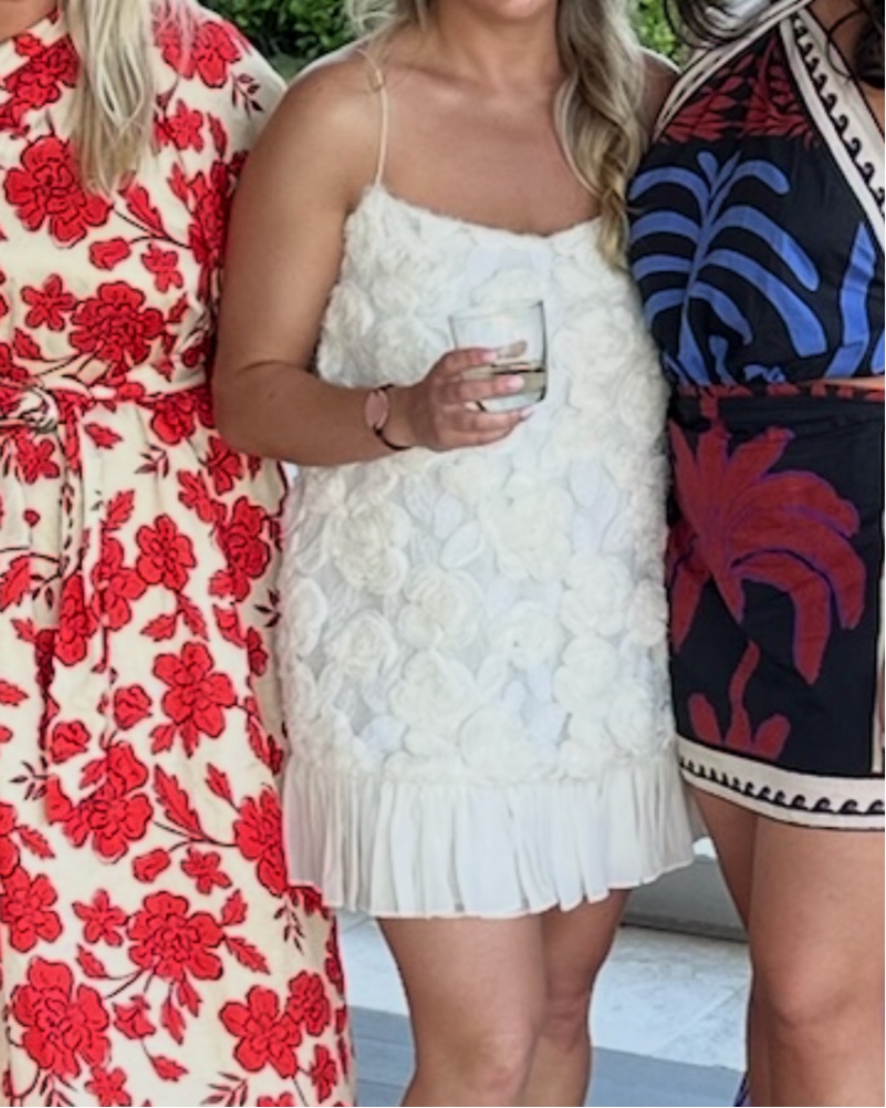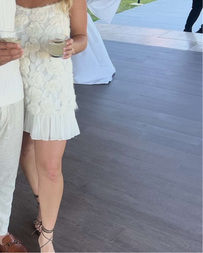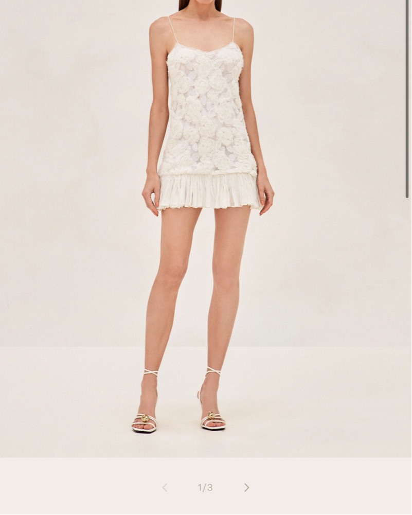 Perfect! Worn once for welcome party for my wedding. Runs small. I am a size 8 in jeans and wear a 38DD bra. Not wearing a bra in this dress. This dress has been altered. Would fit someone more like a medium/large. Probably around size 8. Got it altered.