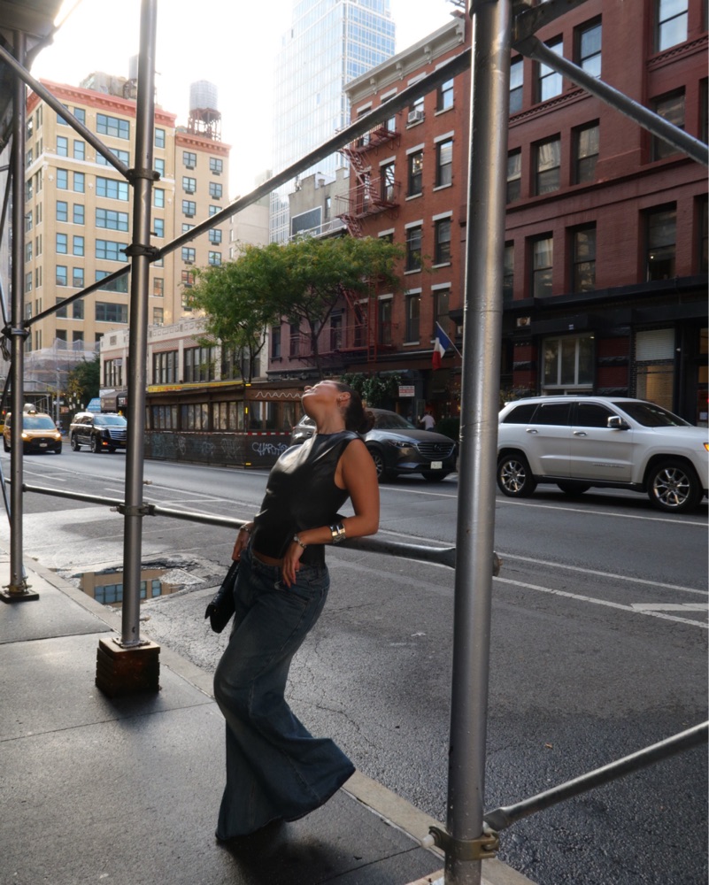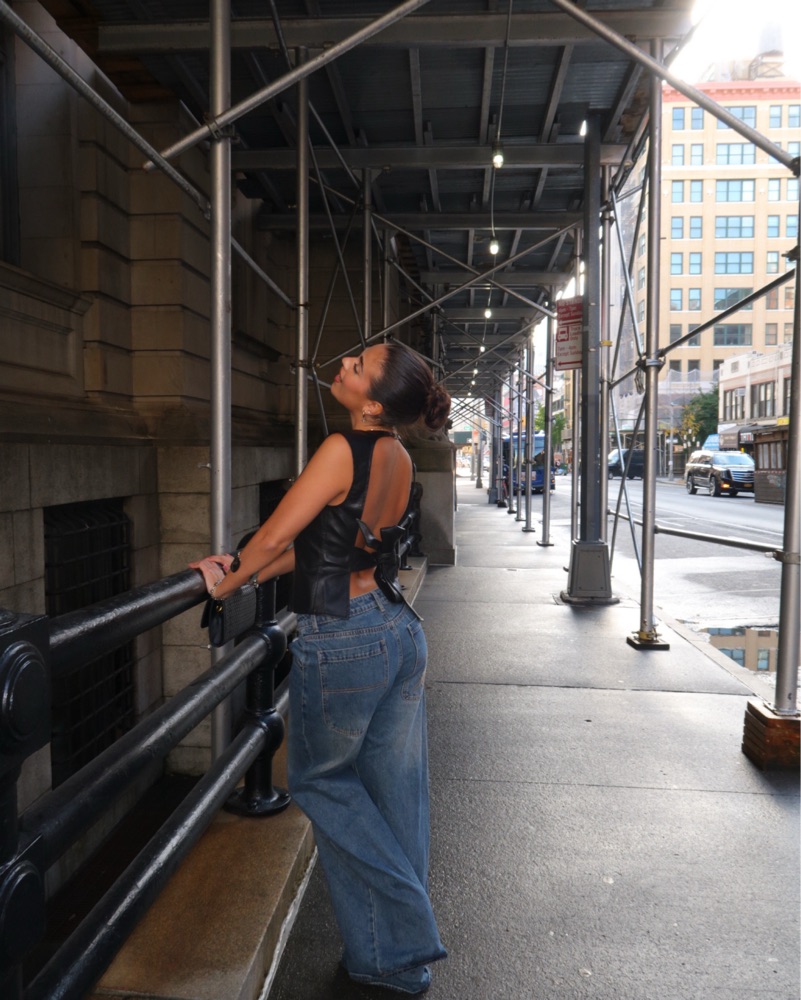 Faux leather backless top from lioness in an XS. Super adjustable and ties in the back
