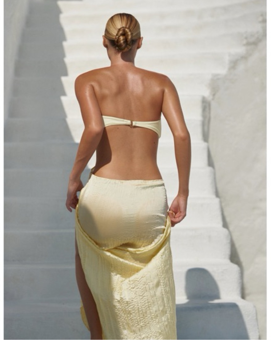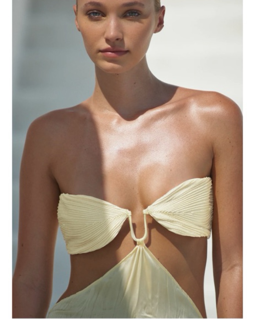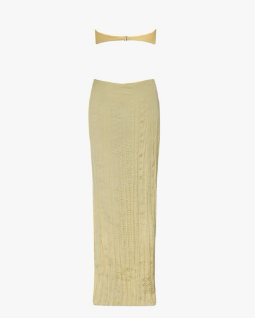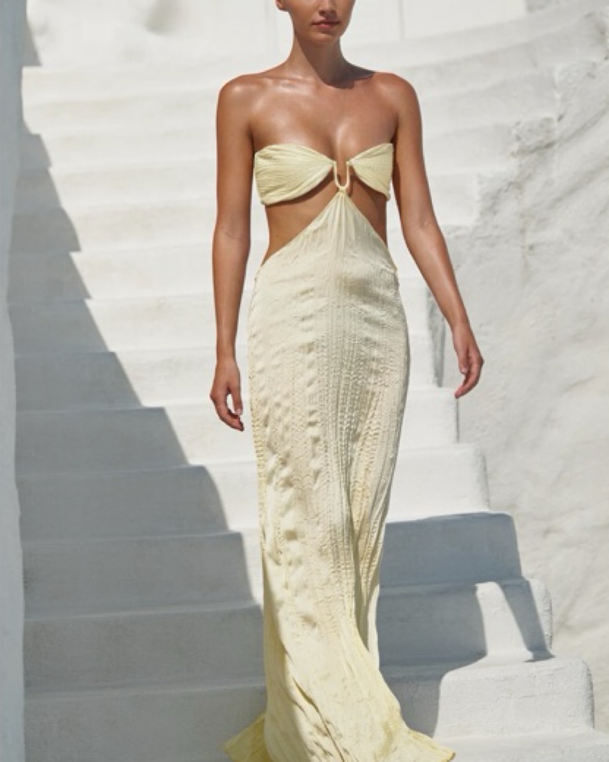 Butter yellow color. Baobab maxi Viola dress. Fit is based more on bust measurements. Beautiful vacation, resort, summer, special occasion, date night, sunset themed outfit. Please DO NOT STEAM/DRY CLEAN (will destroy the pleats).