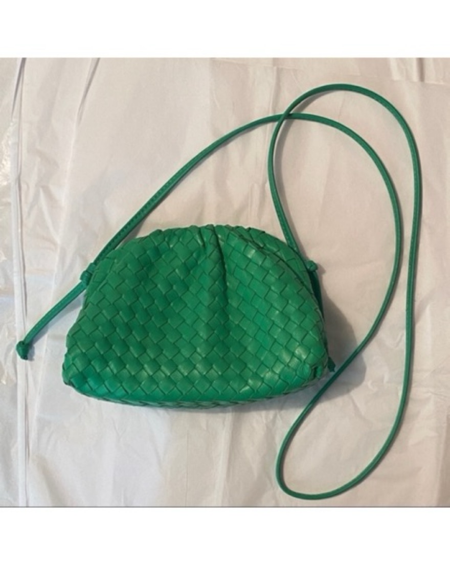 woven green crossbody bag - real leather