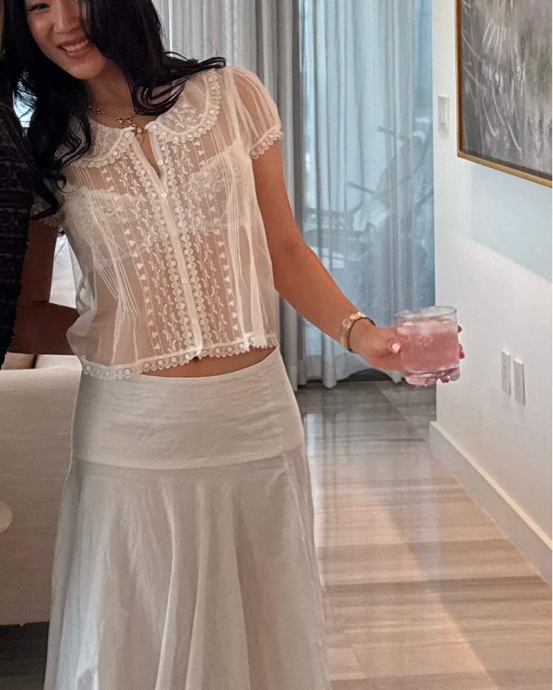 Lace Mesh Doen White Blouse