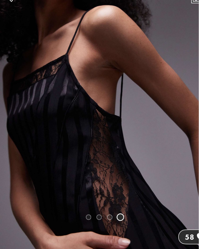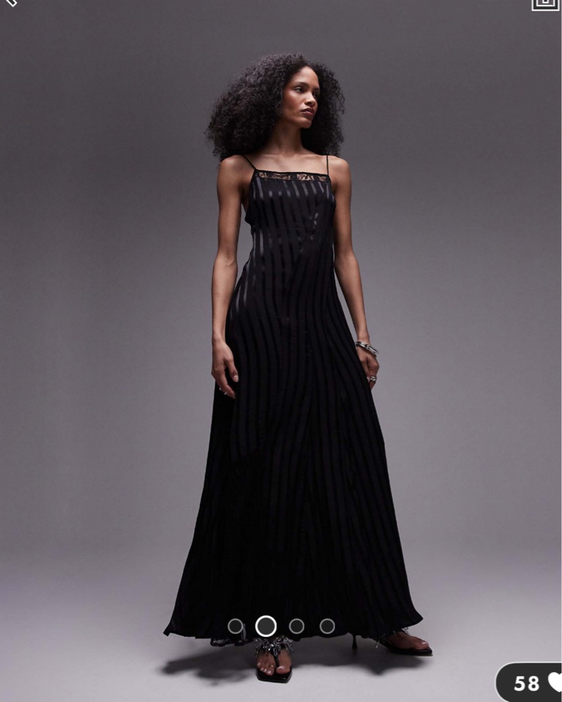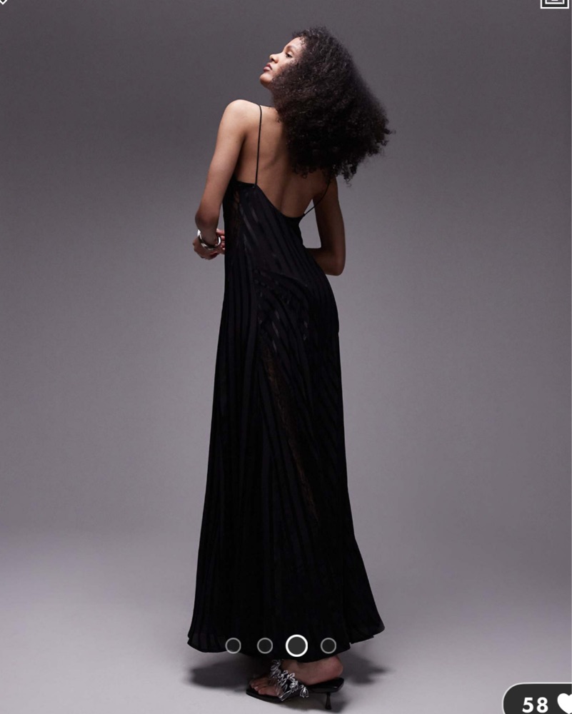 This stunning black maxi dress is perfect for a formal event or special occasion. The delicate lace details add a touch of elegance.