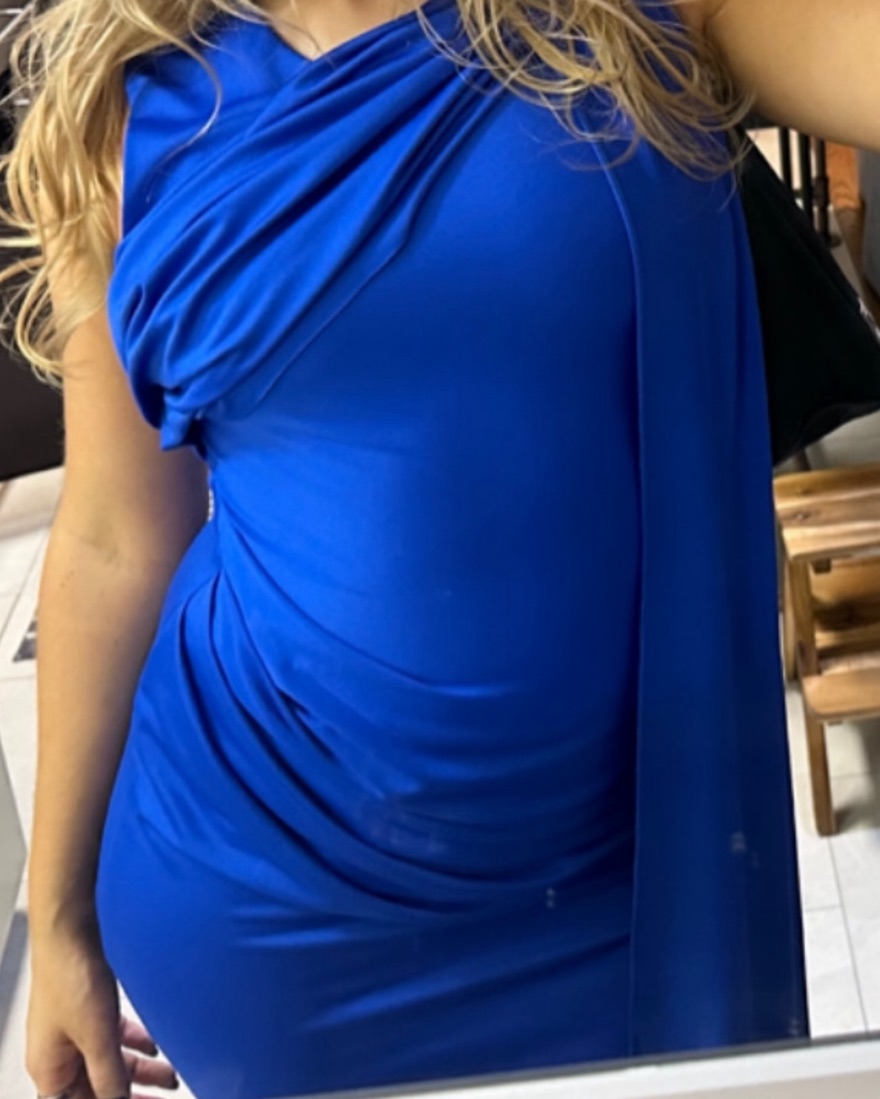 Maxi dress from Bloomingdale’s , brand Black Halo. Draped and very flattering. Material is 95% polyamide 5% Spandex