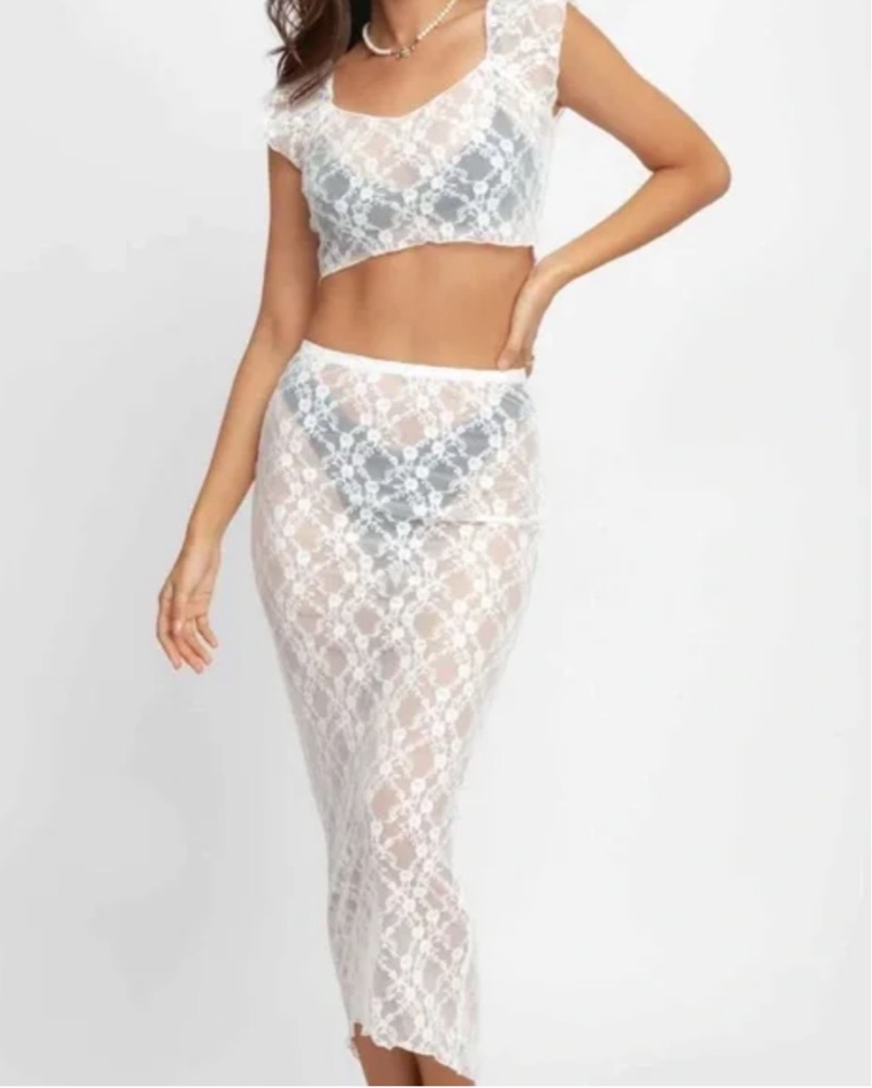 White Lace Two Piece Skirt Set
