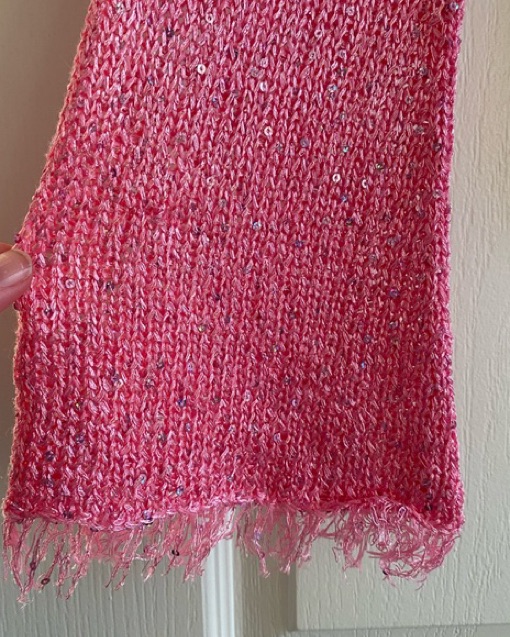 Sheer, sequined pink cardigan with front tie. Must be worn with a bralette. The sequins are delicate and easily latch on to things so please be careful 🙏🏼 note: price includes dry cleaning