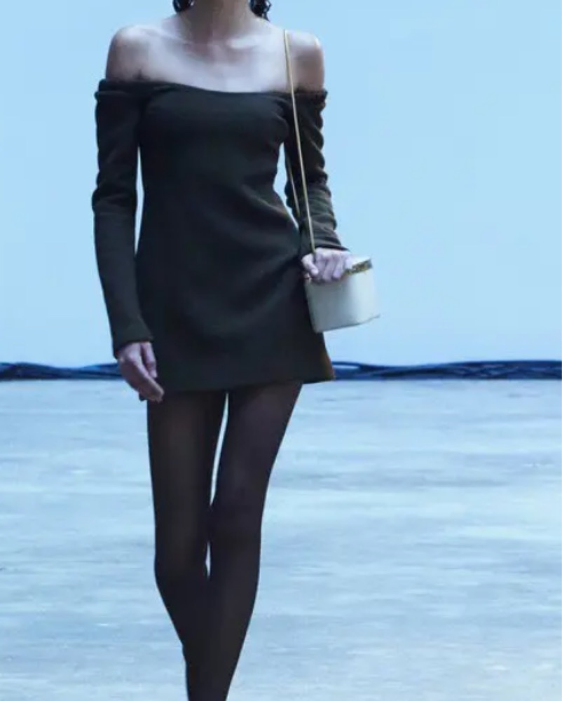 Off the Shoulder Long Sleeve Wool Crepe Minidresso it