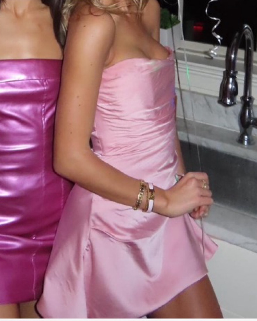 House of CB Jasmine Pink Mini Dress. One small snag, and top left inside of the corset has been reinforced with thread as pictured in the last photo (she’s been rented a lot and well loved) but in really good condition otherwise.