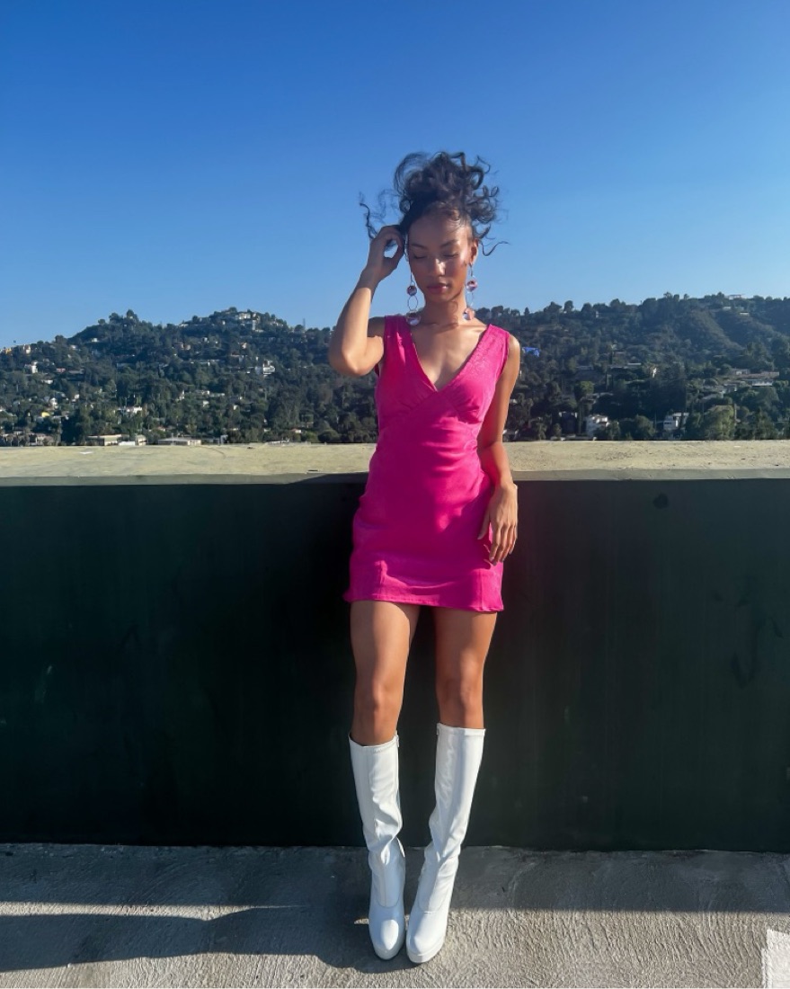 Pepper Mayo Audrey Slip pink mini v-neck sleeveless dress with tie in the back (says size 2 but can also fit 4)