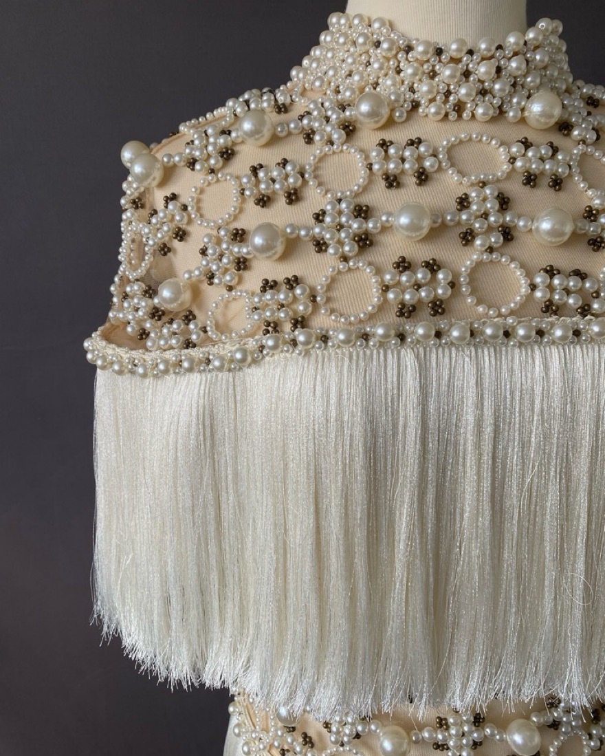 PatBo Hand-Beaded Pearl + Fringe Mini