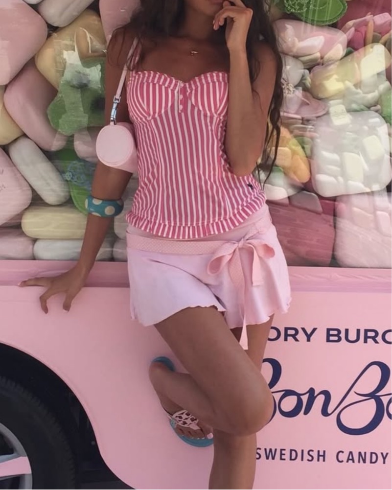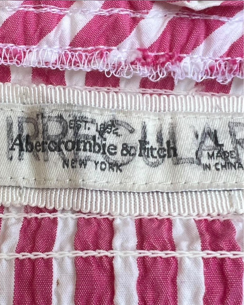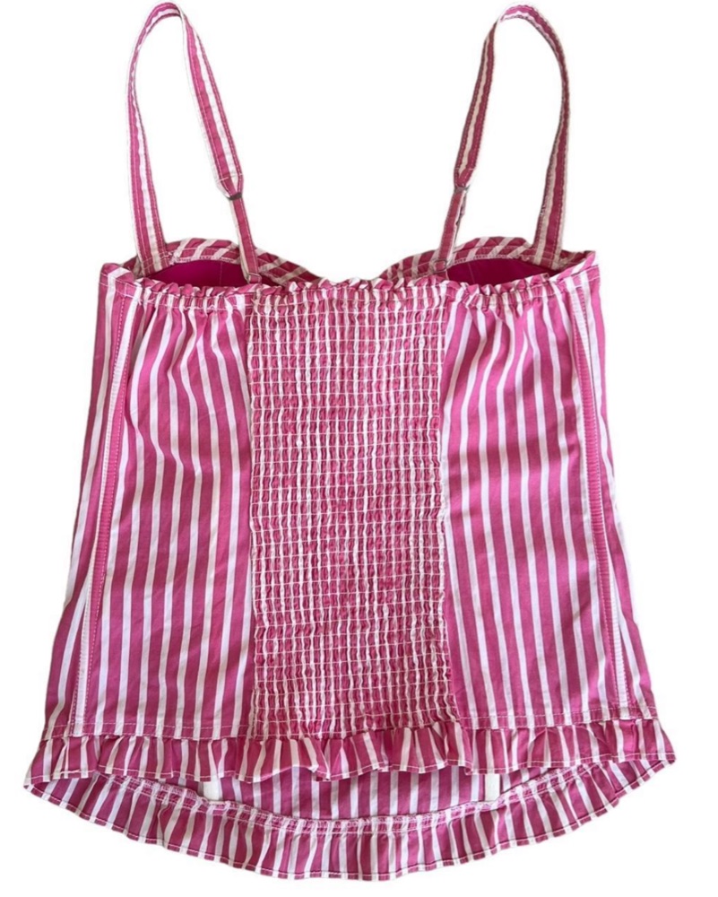 VINTAGE ABERCROMBIE & FITCH PINSTRIPED CORSET STYLE FRILLY BABYDOLL TOP