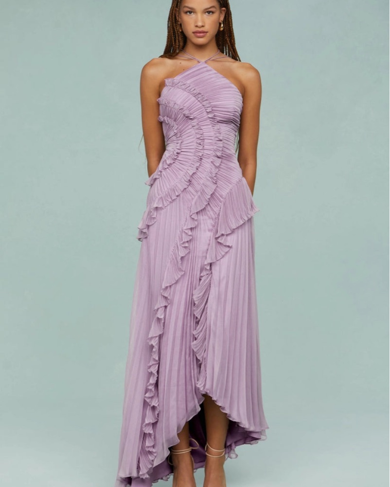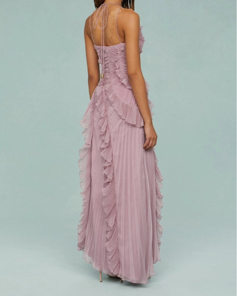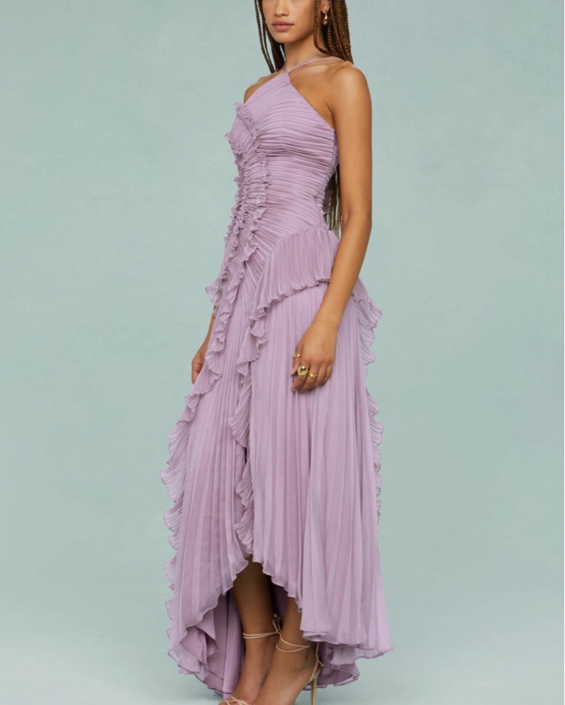 Pleated Frill Halter Maxi Dress Venisse