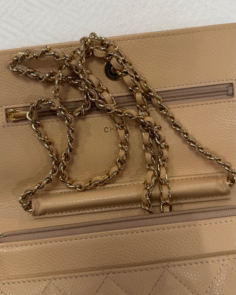Luxurious Quilted Leather Chain Wallet by Chanel - Pickle