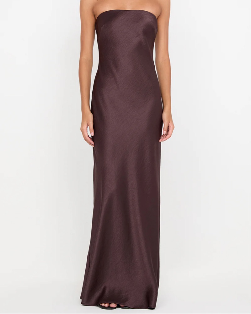 The BEC + BRIDGE Austen Strapless Maxi Dress is a refined and effortless choice, perfect for bridesmaids and special occasions. Crafted from midweight satin with a lustrous sheen, this elegant maxi dress features an elasticated strapless neckline. Isn’t as long as on model!