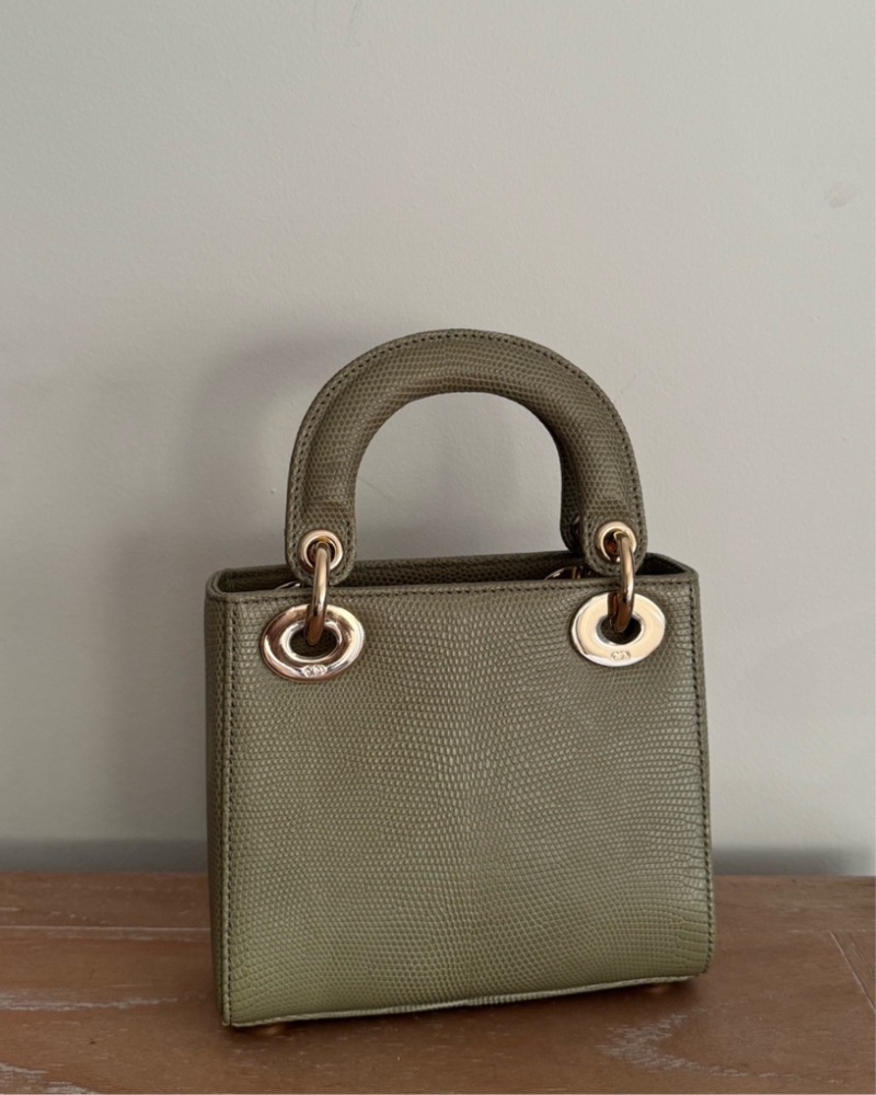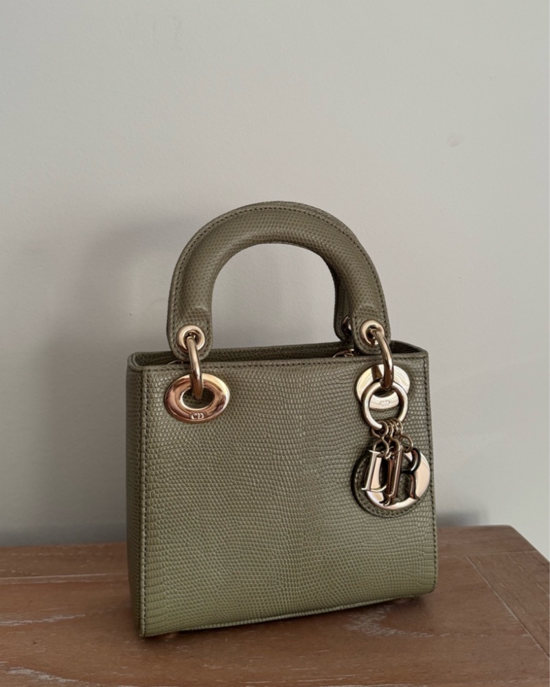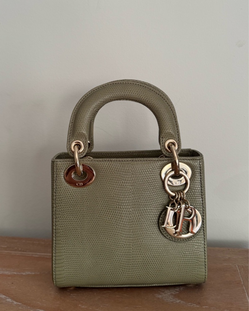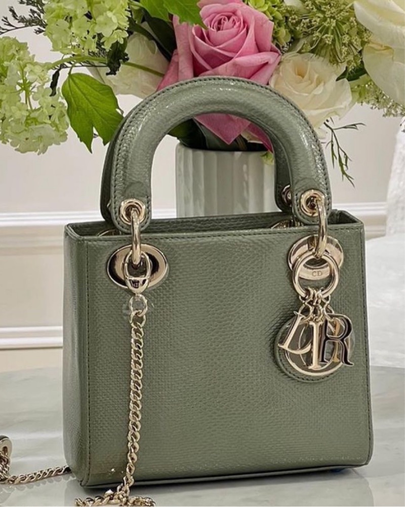 The Lady Dior bag embodies Dior's vision of elegance and beauty. Sleek and refined, the timeless yet modern style is adorned with pale gold-finish metal D.I.O.R. charms that further embellish its silhouette. The miniature style, an ideal evening wear companion, has a removable chain shoulder strap.