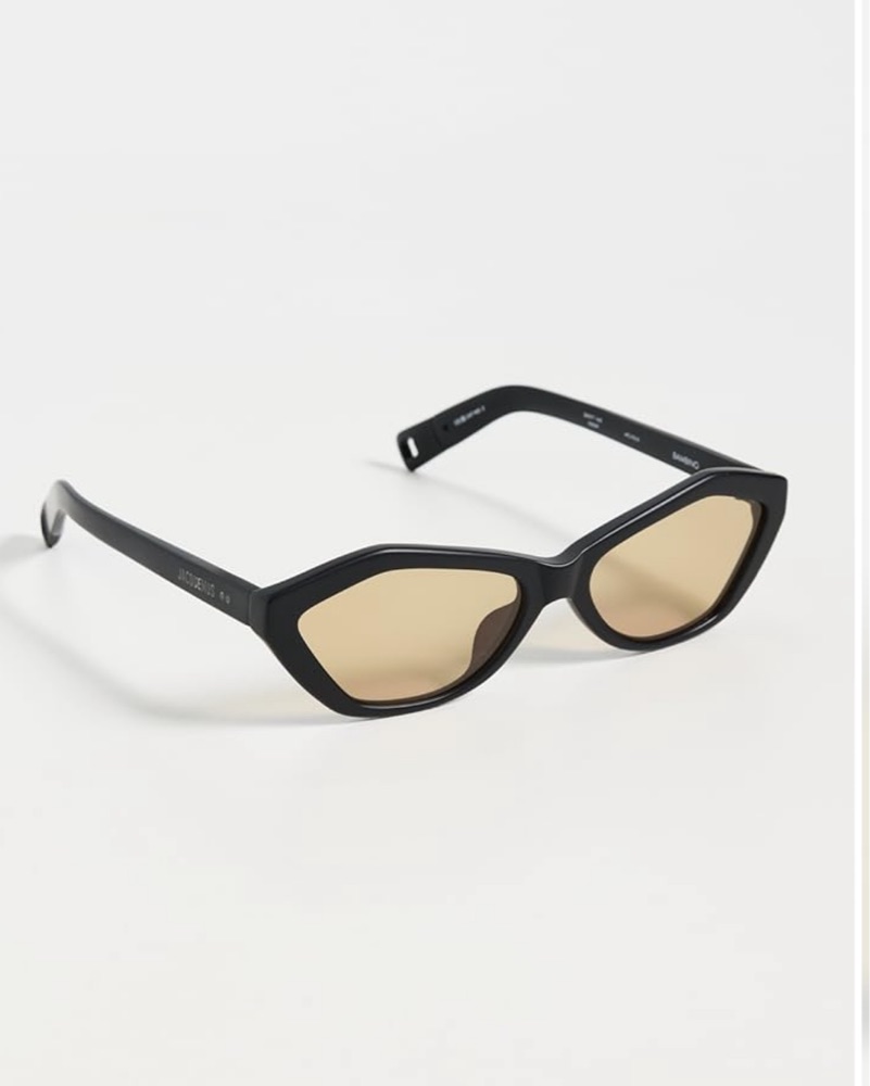 Cute black frame sunglasses with light yellow/beige tinted lenses. Brand is JACQUEMUS