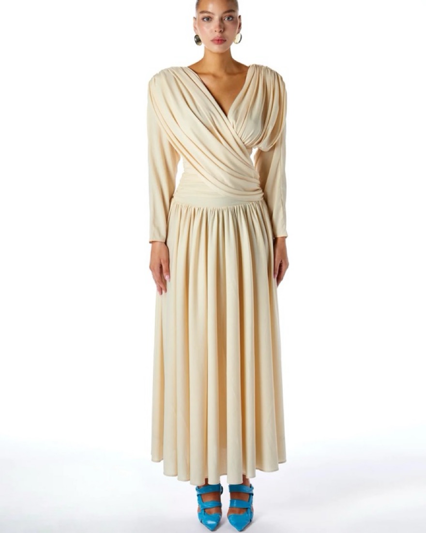 Amy Shehab LONG SLEEVE DRAPED DRESS