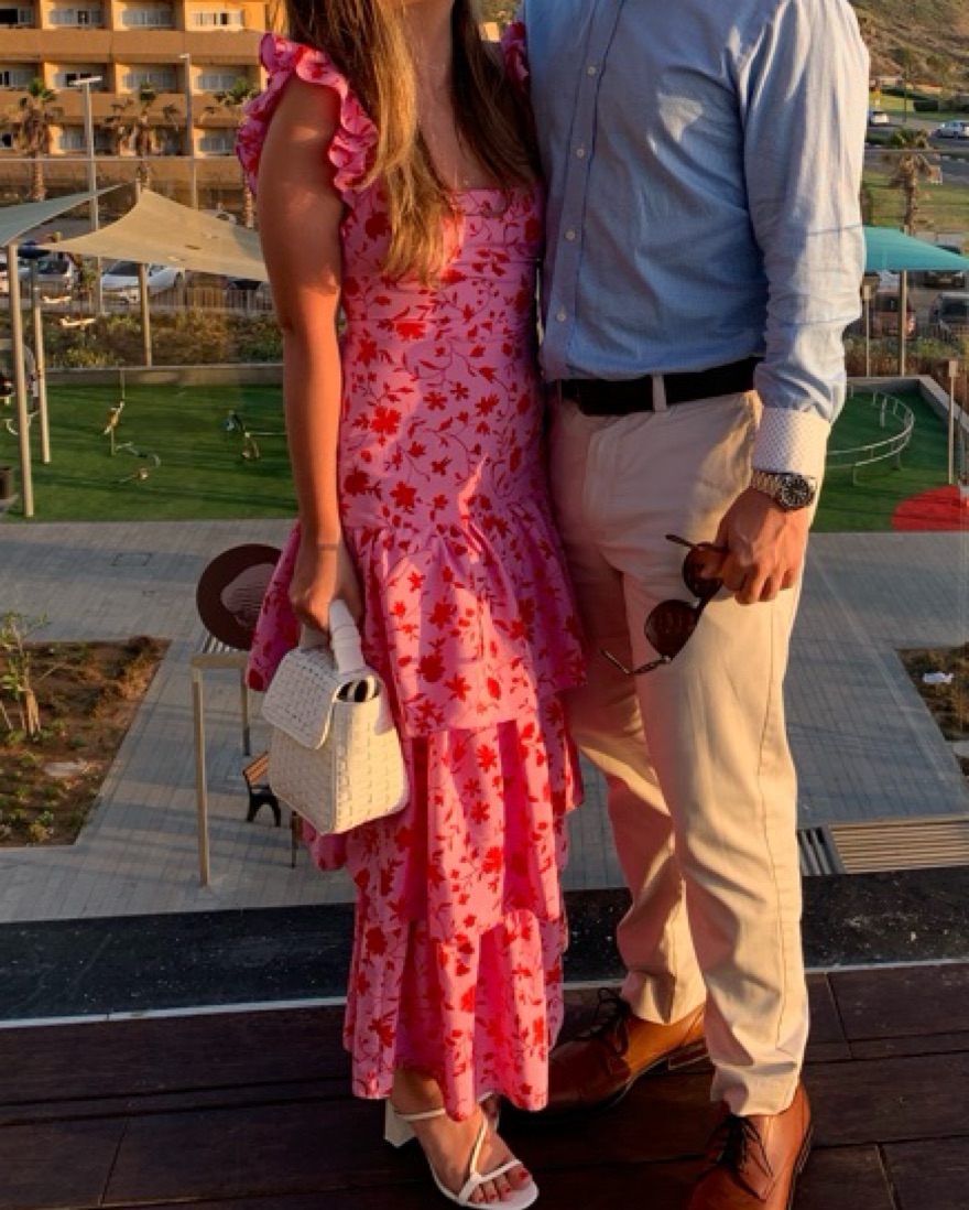 Perfect wedding guest dress. Purchased from Nordstrom. The slit is a bit ripped but you cannot see it. It’s covered.