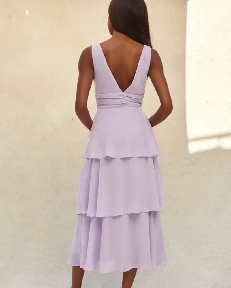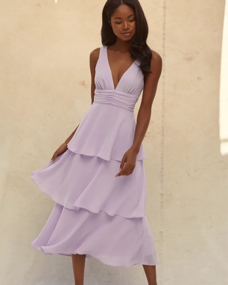Sleeveless Tiered Midi Dress by Lulus - Pickle