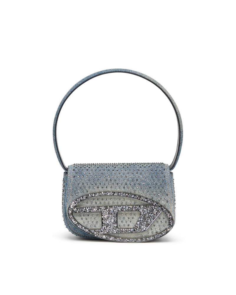 Combining Diesel's denim expertise with a highly recognisable shape, this women's bag is crafted from solarised denim, featuring a distinctive sun-faded effect. The iconic half-moon silhouette is adorned with all-over rhinestones on the flap, and crystal-encrusted Oval D hardware.