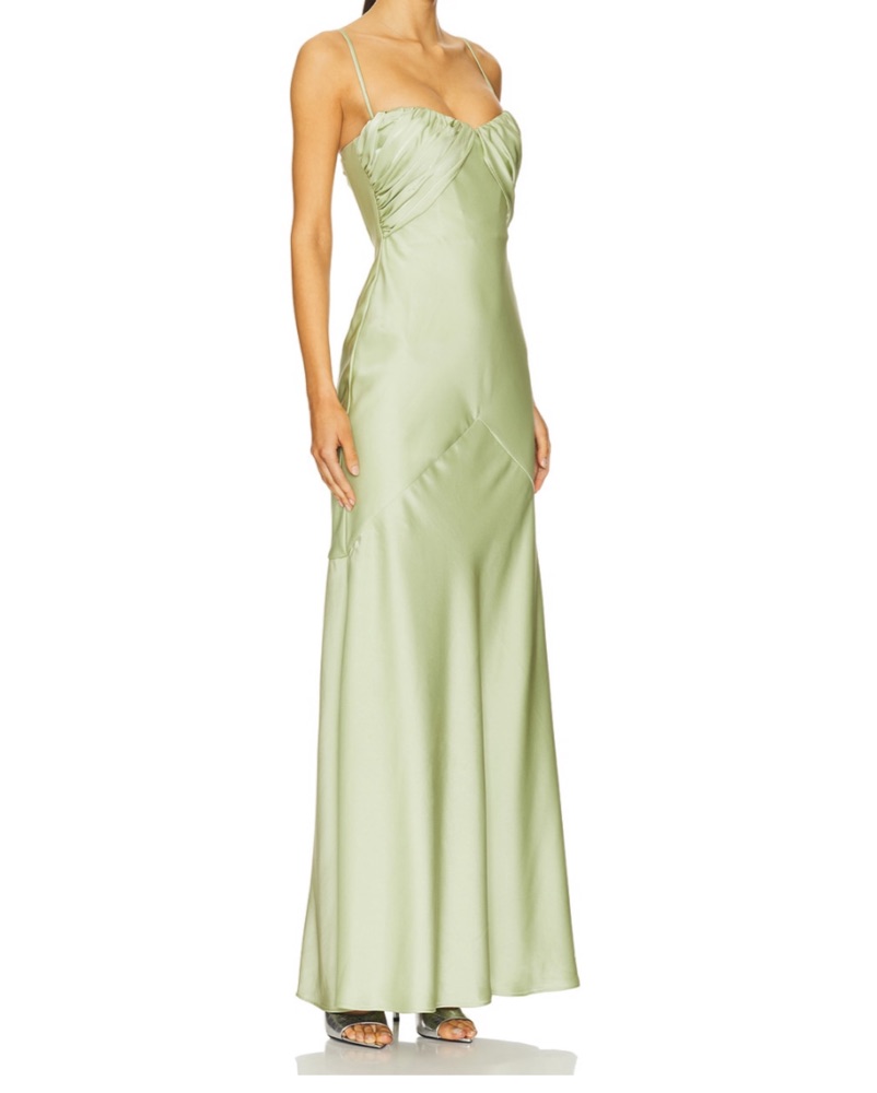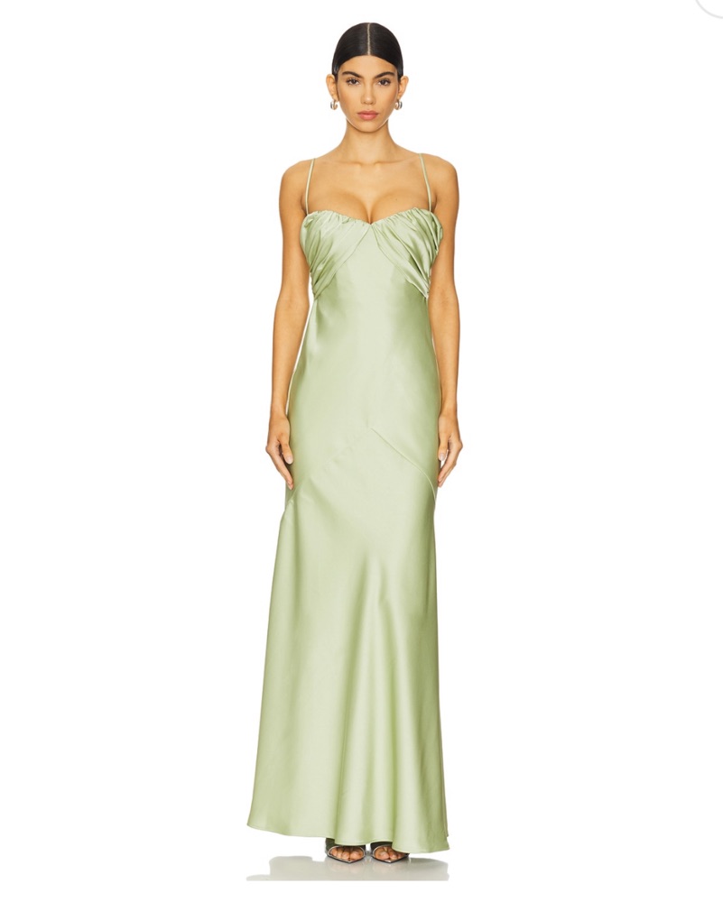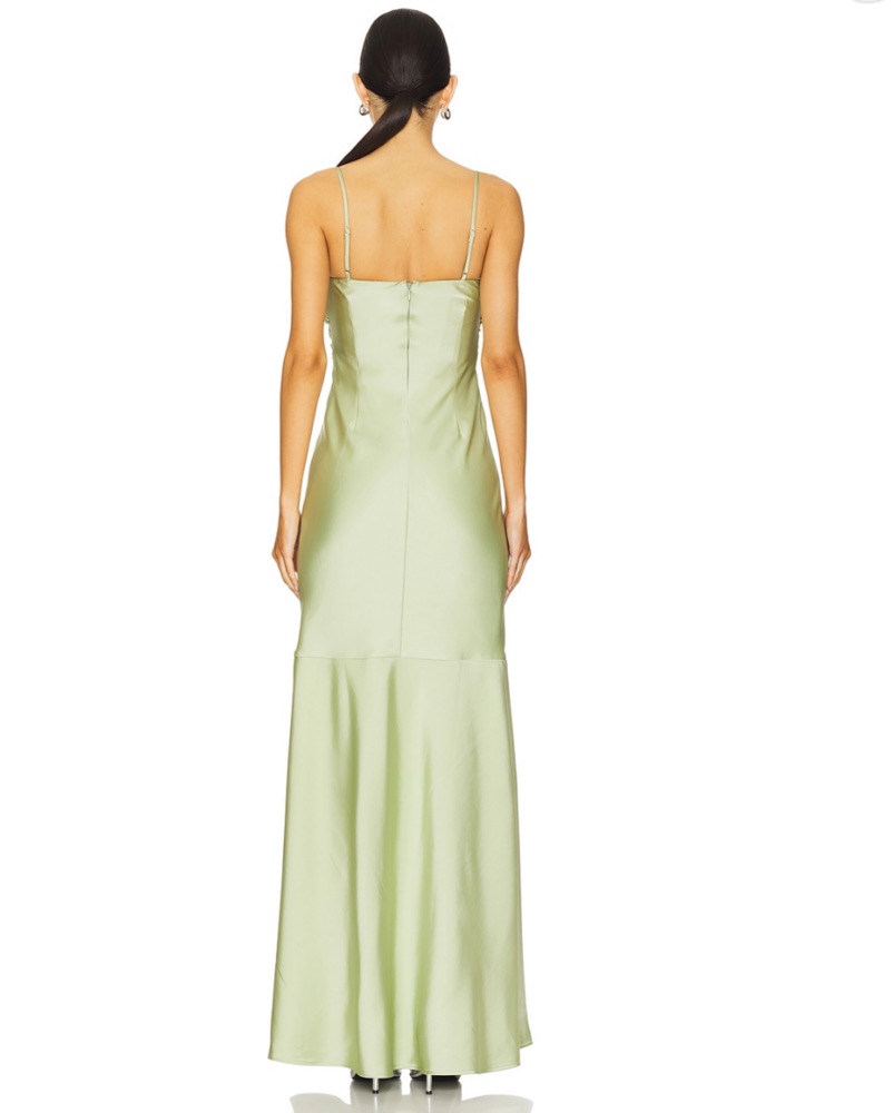 Purchased from Revolve. Brand is Lovers and Friends. Worn once and just spent $85 getting it cleaned (priced high due to fabric/dry cleaning cost). Has built in corset with zipper. This size from shoulder seam to hem measures approx 61" in length #revolve #bridesmaid #greenbridesmaiddress