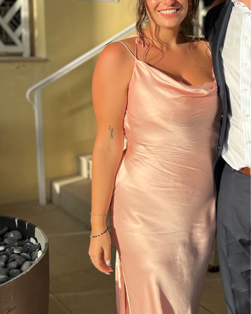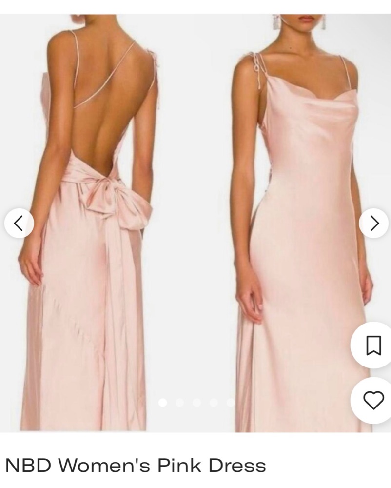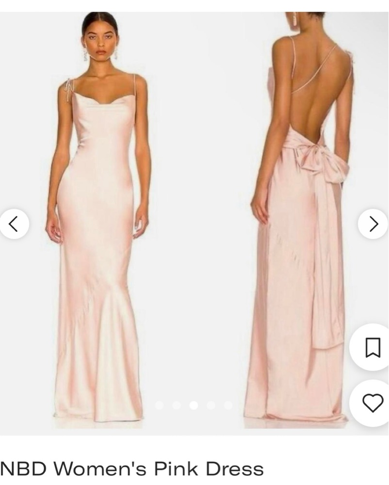 Pink NBD GREER GOWN, color says champagne but it’s a light pink. Open back, can tie straps as tight or loose as you want