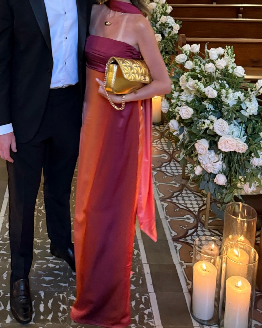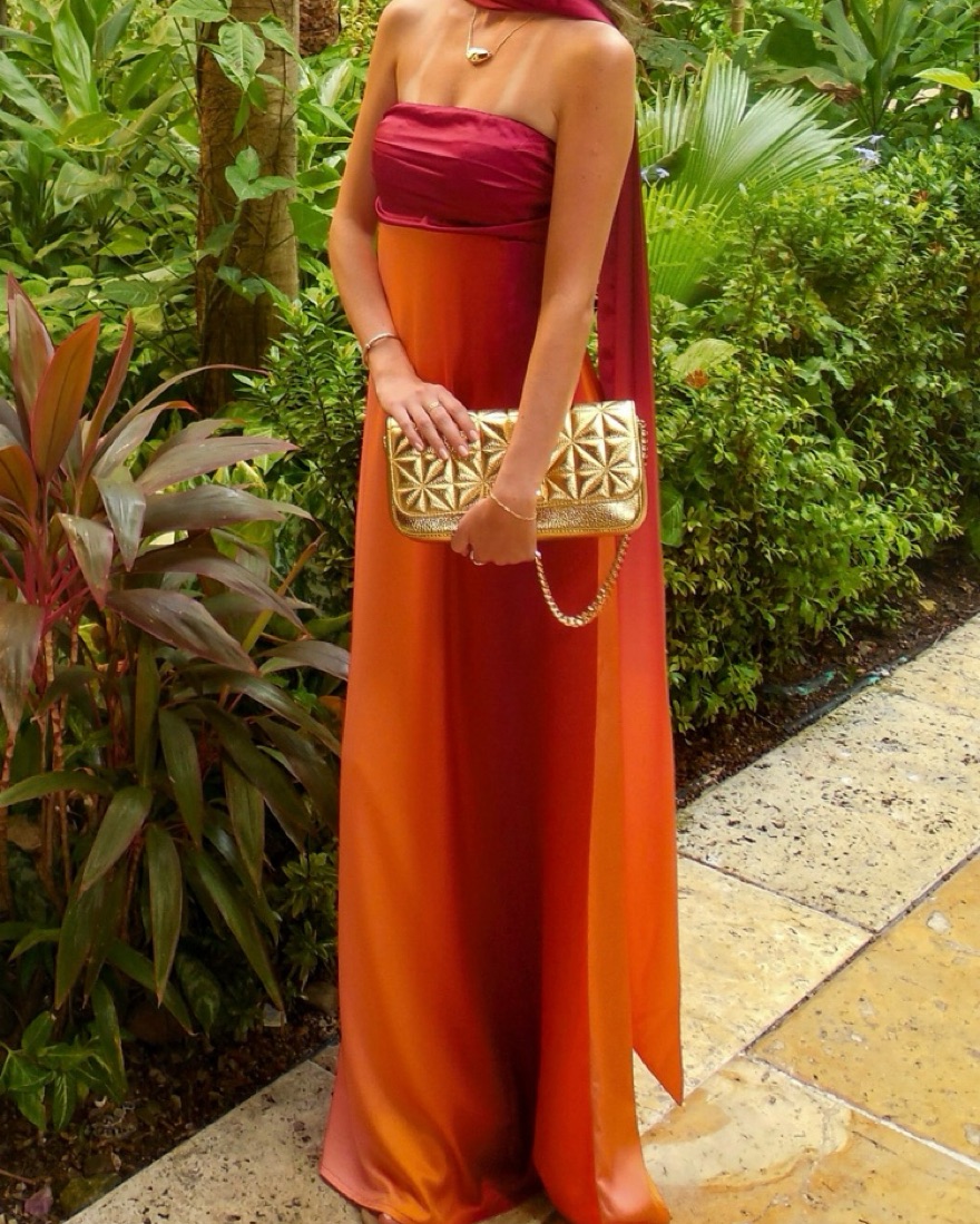 Aurora- sunset colored full length dress with scarf in size XS. Worn once and in perfect condition