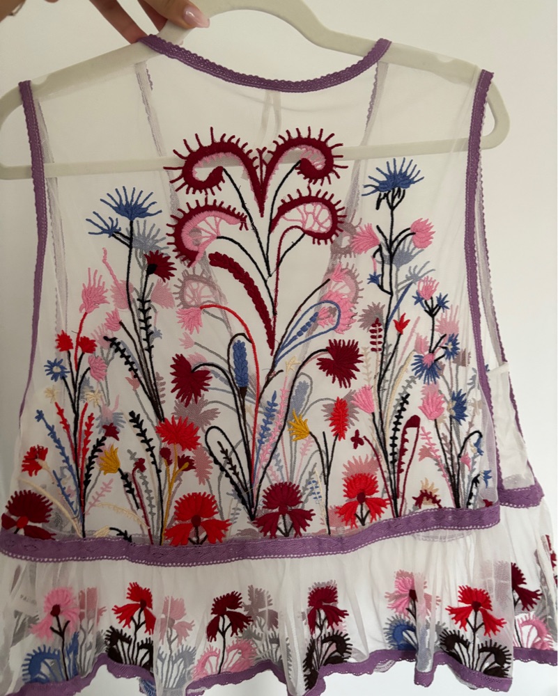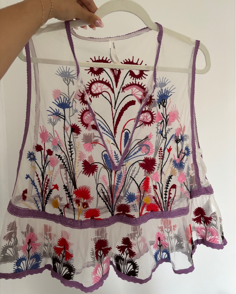 Anthropologie Mesh Embroidered Tank