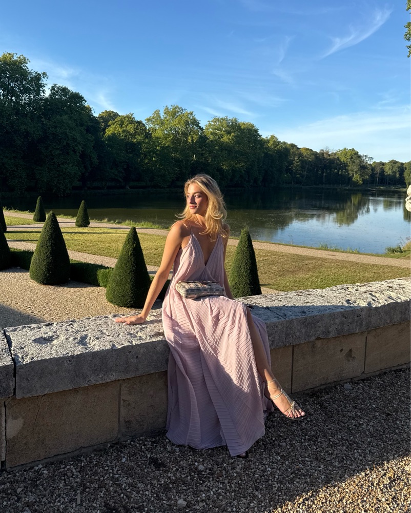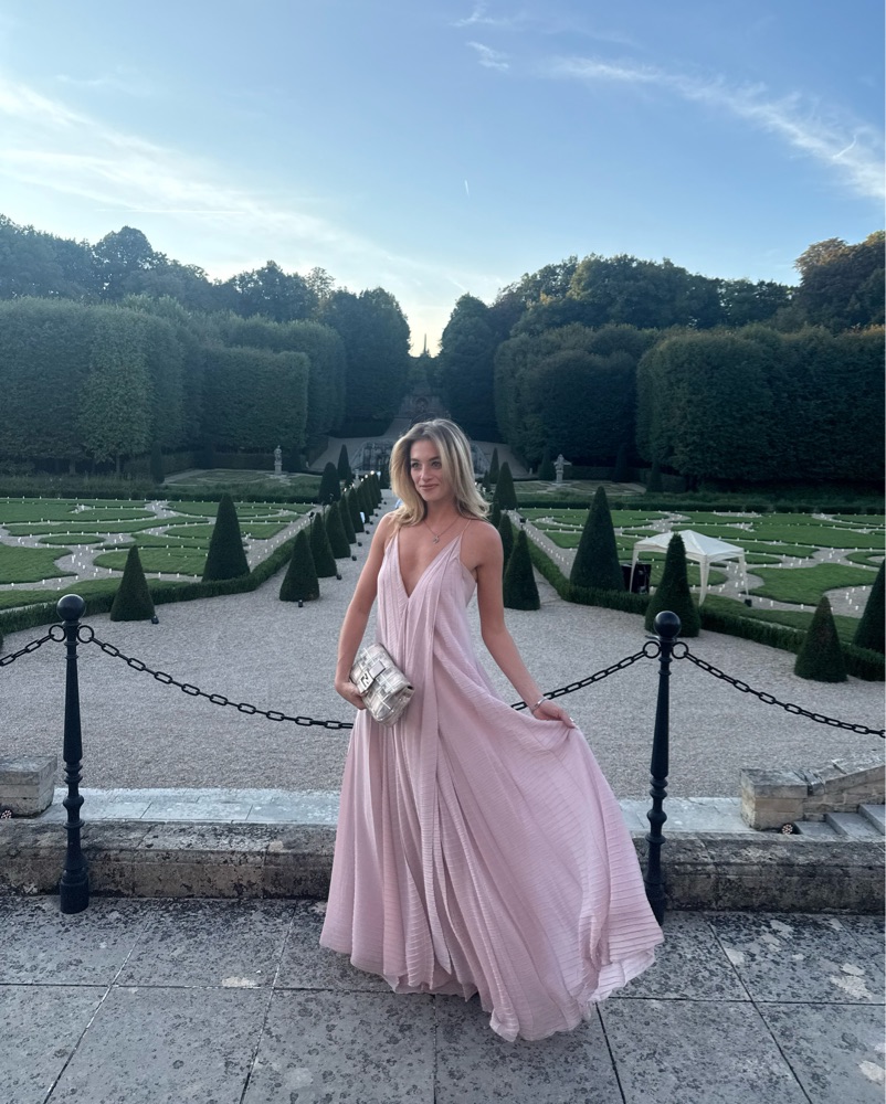 The most stunning floor length pleated gown by Roland Mouret. Super beautiful and flowy AND has pockets!! Blush / dusty pink 💞 size small but would fit xs-m.