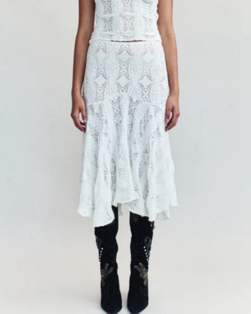 With Jean Midi Lace Skirt