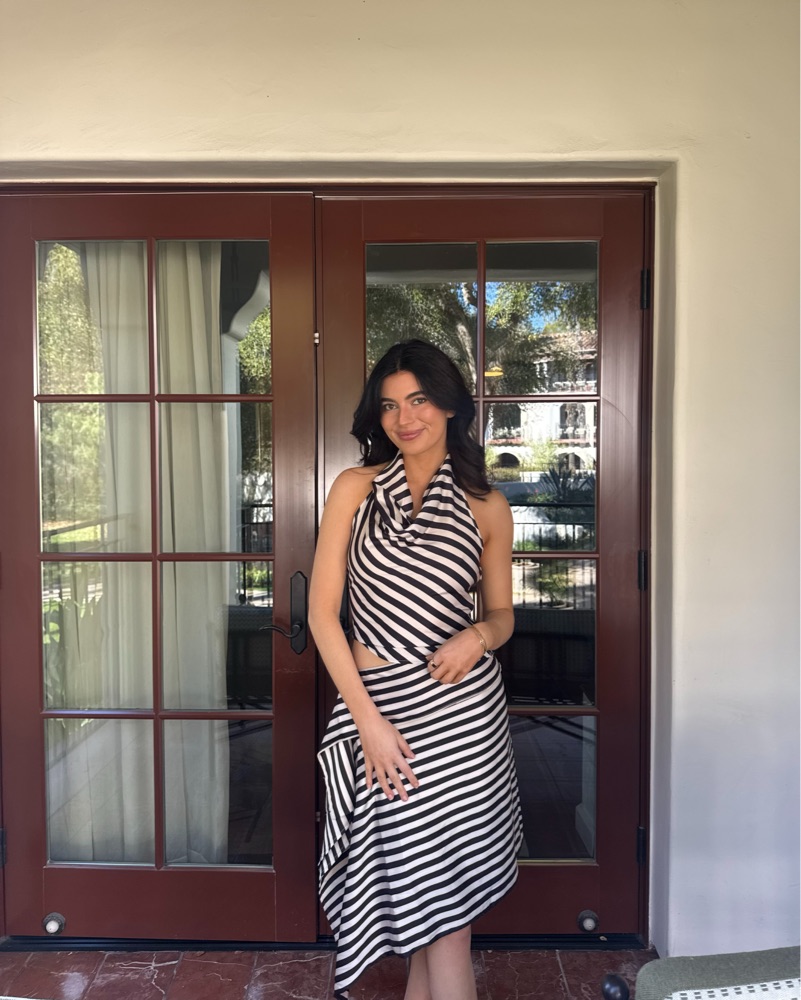 Allure midi skirt and heritage halter top in cream stripe. Size small in both! I'm 5'7 for reference, worn once in perfect condition