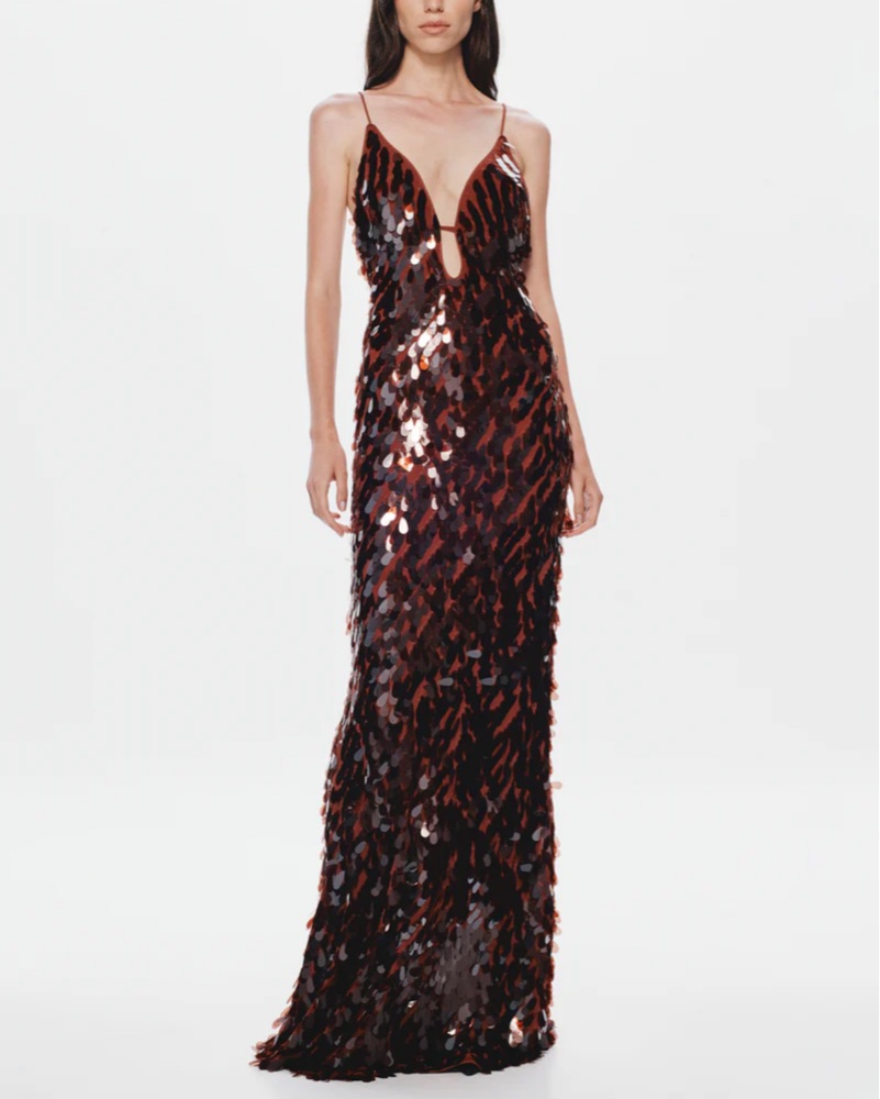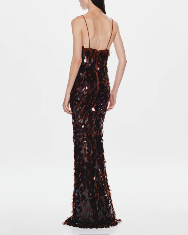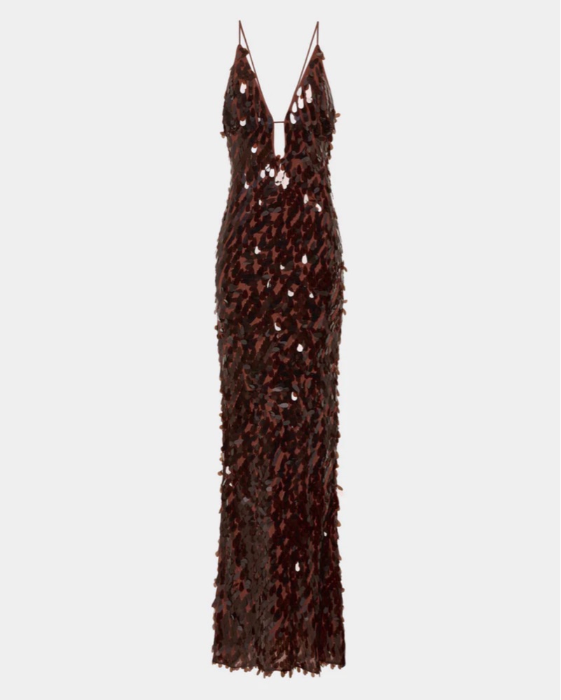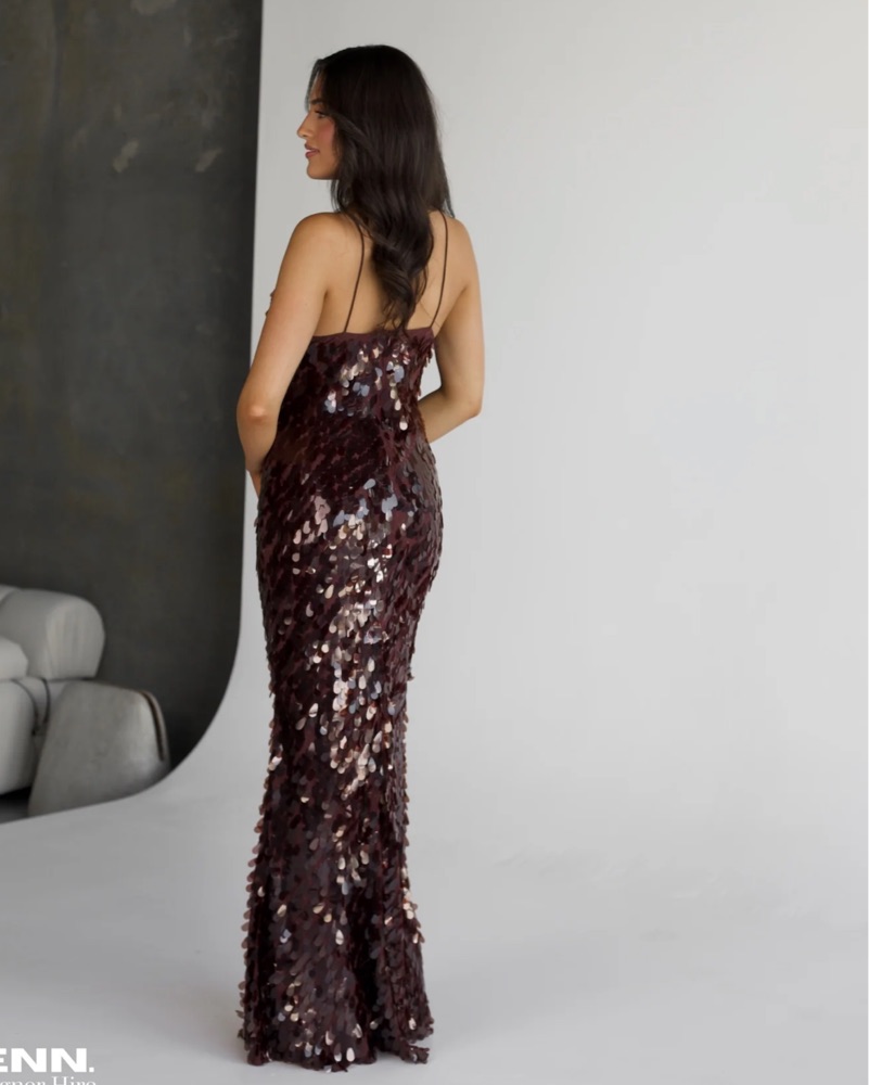 Size XS but I have taken it in a little bit at the tailor so it’s an XS/XXS. PLEASE BE CAREFUL AND TAKE CARE OF HER. THE SEQUINS COMES OFF EASILY. IF YOU SEE ANY DROPPED SEQUINS PLEASE SAVE THEM AND SEND IT BACK WITH DRESS!!!!