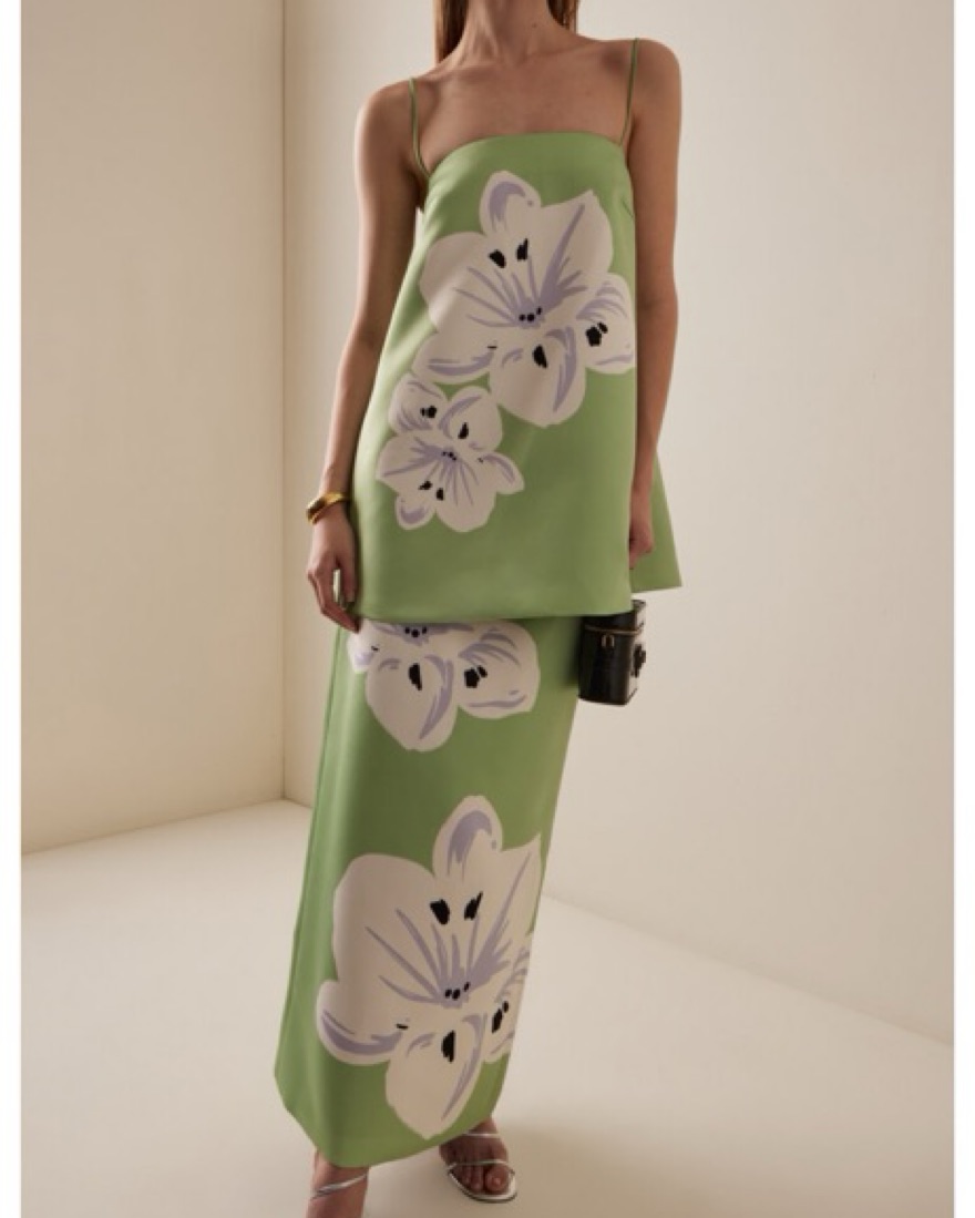 LEO LIN Etienne Floral-Print Top Green by Leo Lin - Pickle