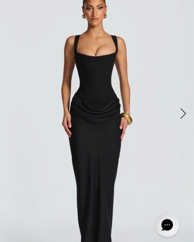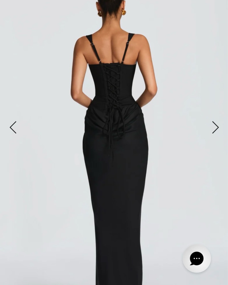 The Cornelia Maxi Dress showcases refined tailoring with a structured crepe bodice, dropped waist, and flowing lyocell skirt. Satin cowl overlay with deep pleats adds movement, while the lace-up back ensures a customized fit. Square neckline and tapered straps complete this sophisticated silhouette.