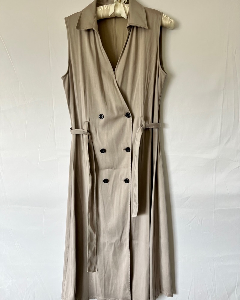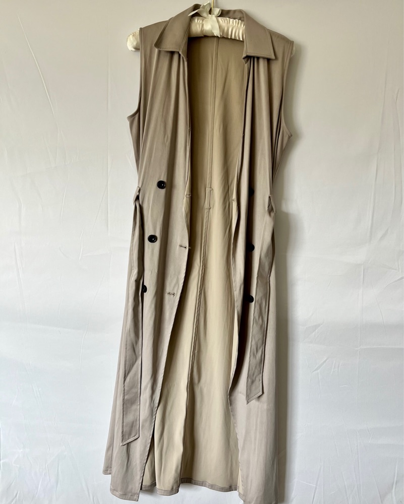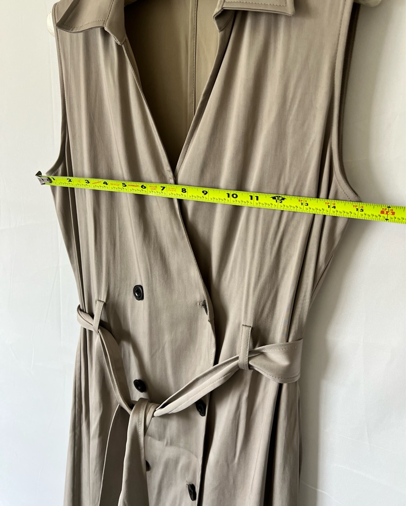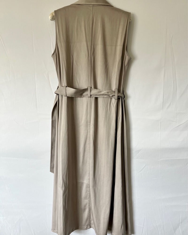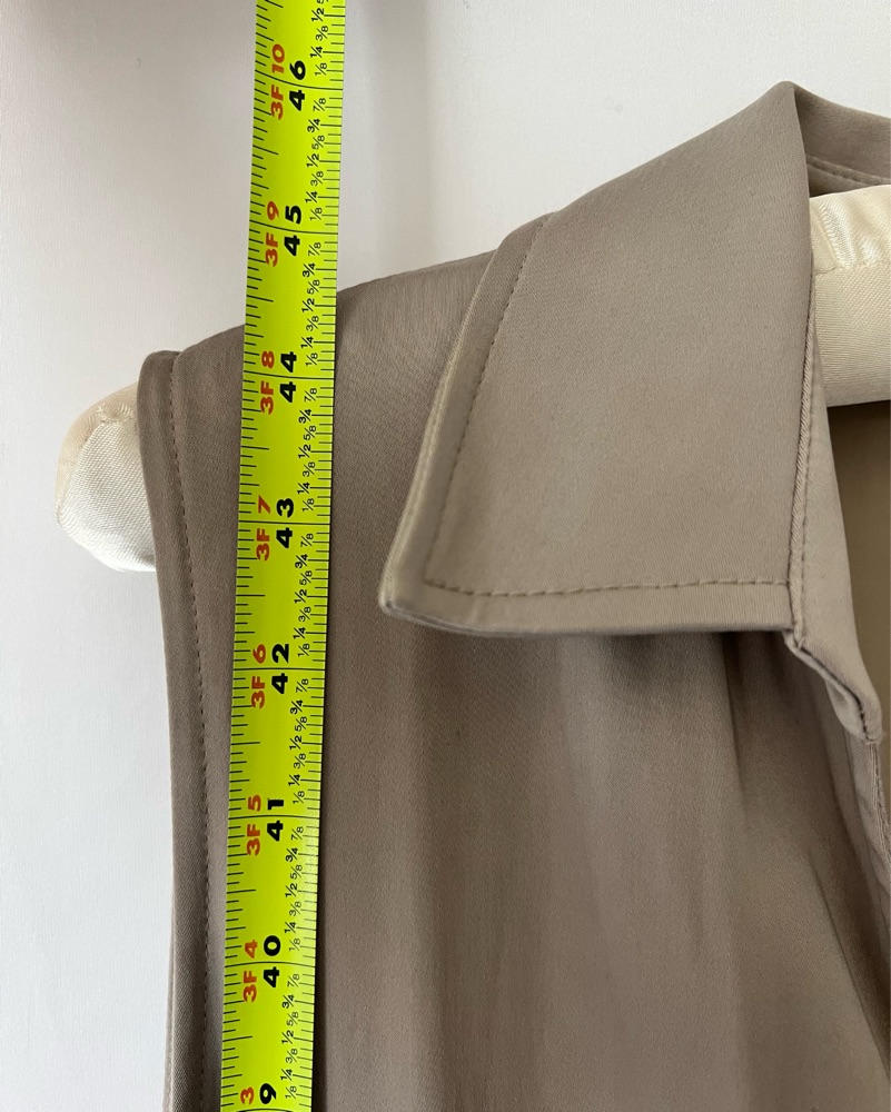 Super versatile piece great for layering. Can be worn as a mid layer or as a dress. Length is about 46”. Made of a weighted silky material in beige