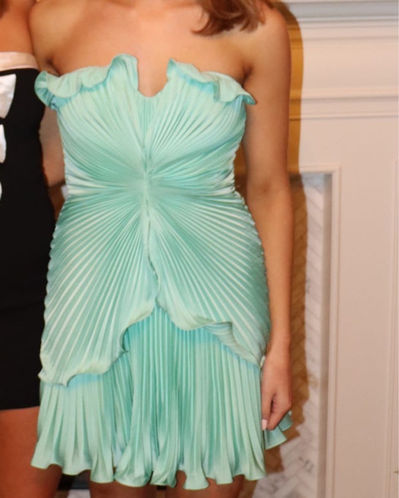 AMUR Seafoam Noa Pleated Mini Dress by AMUR - Pickle