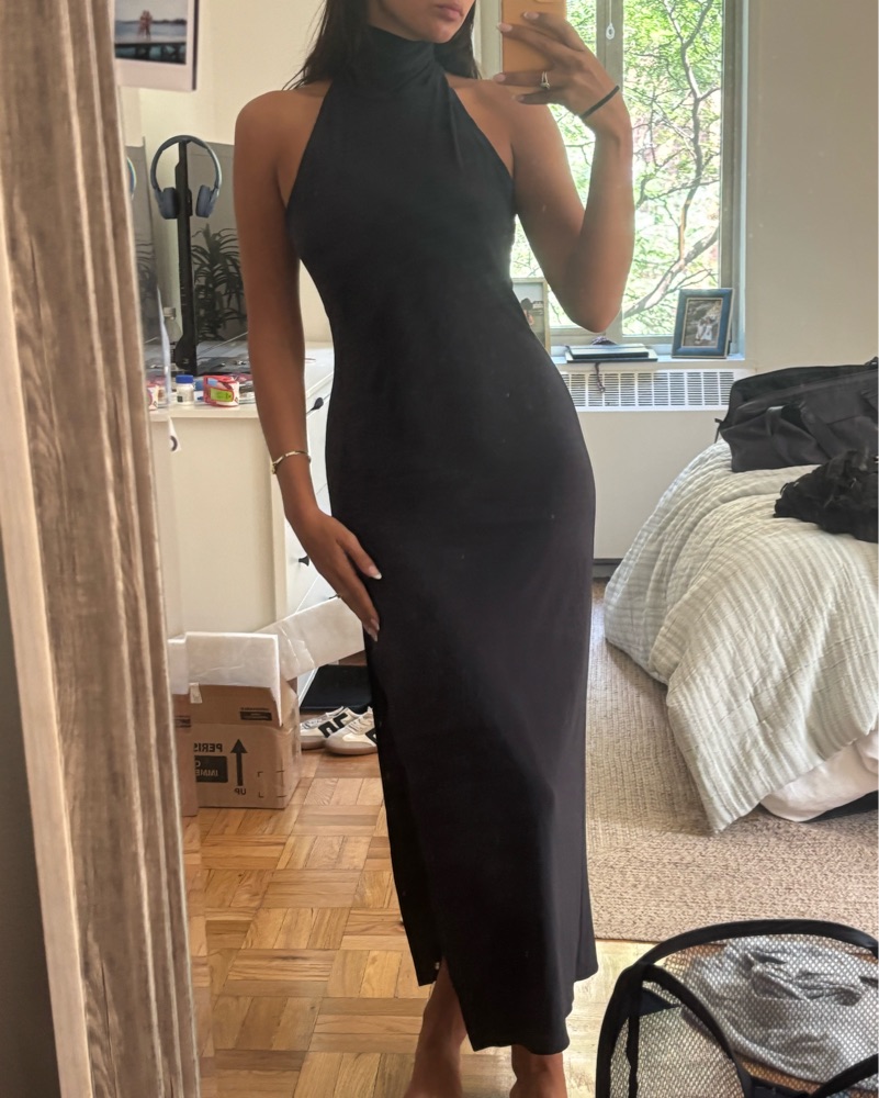 My go-to dress for a formal/cocktail event party. Fabric is like butter. I have lent to friends varying from size 6-10. Purchased from revolve.